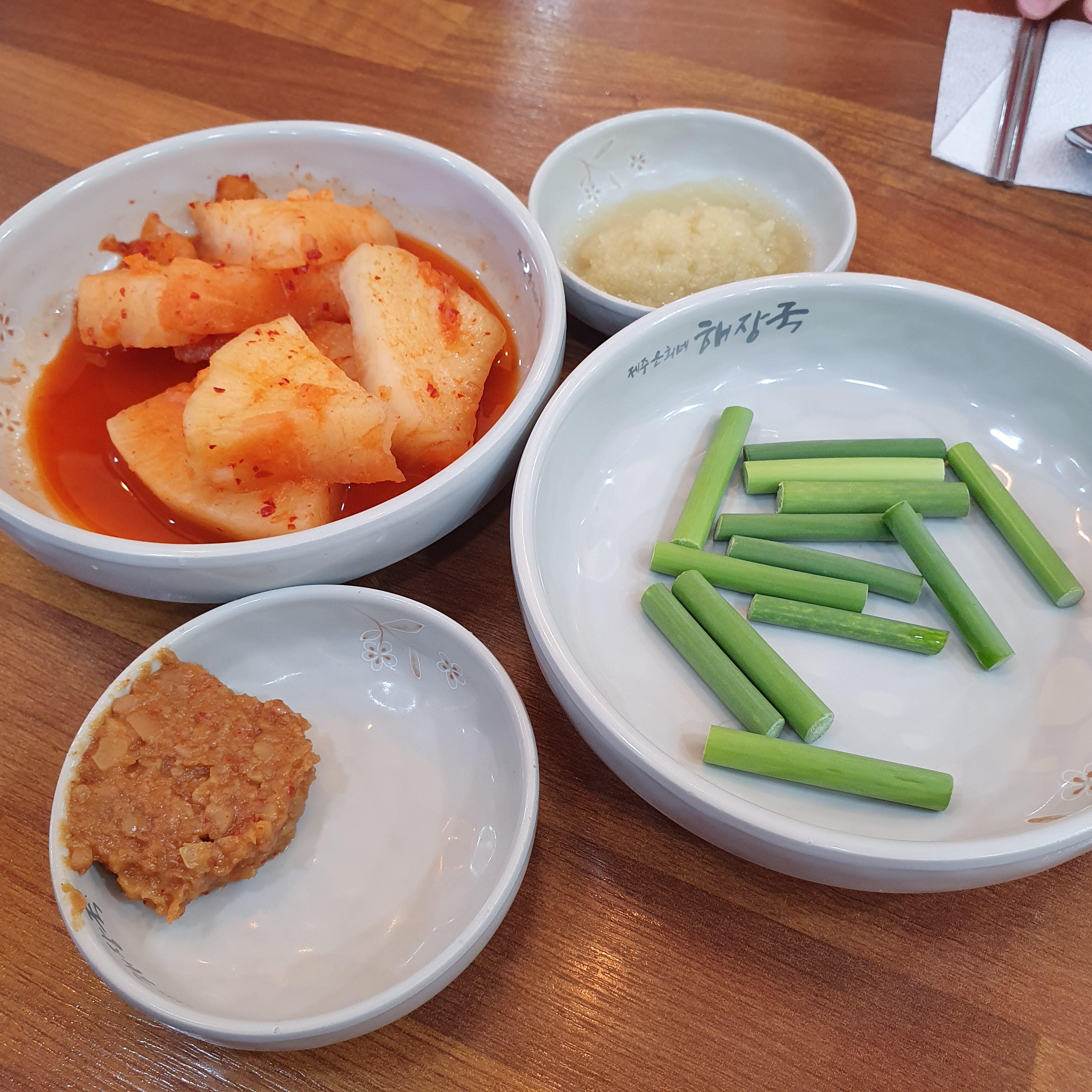 기본반찬이 나오는데, 역시 한국인의 김치 깍두기가 국밥과 너무나 잘어울립니다.