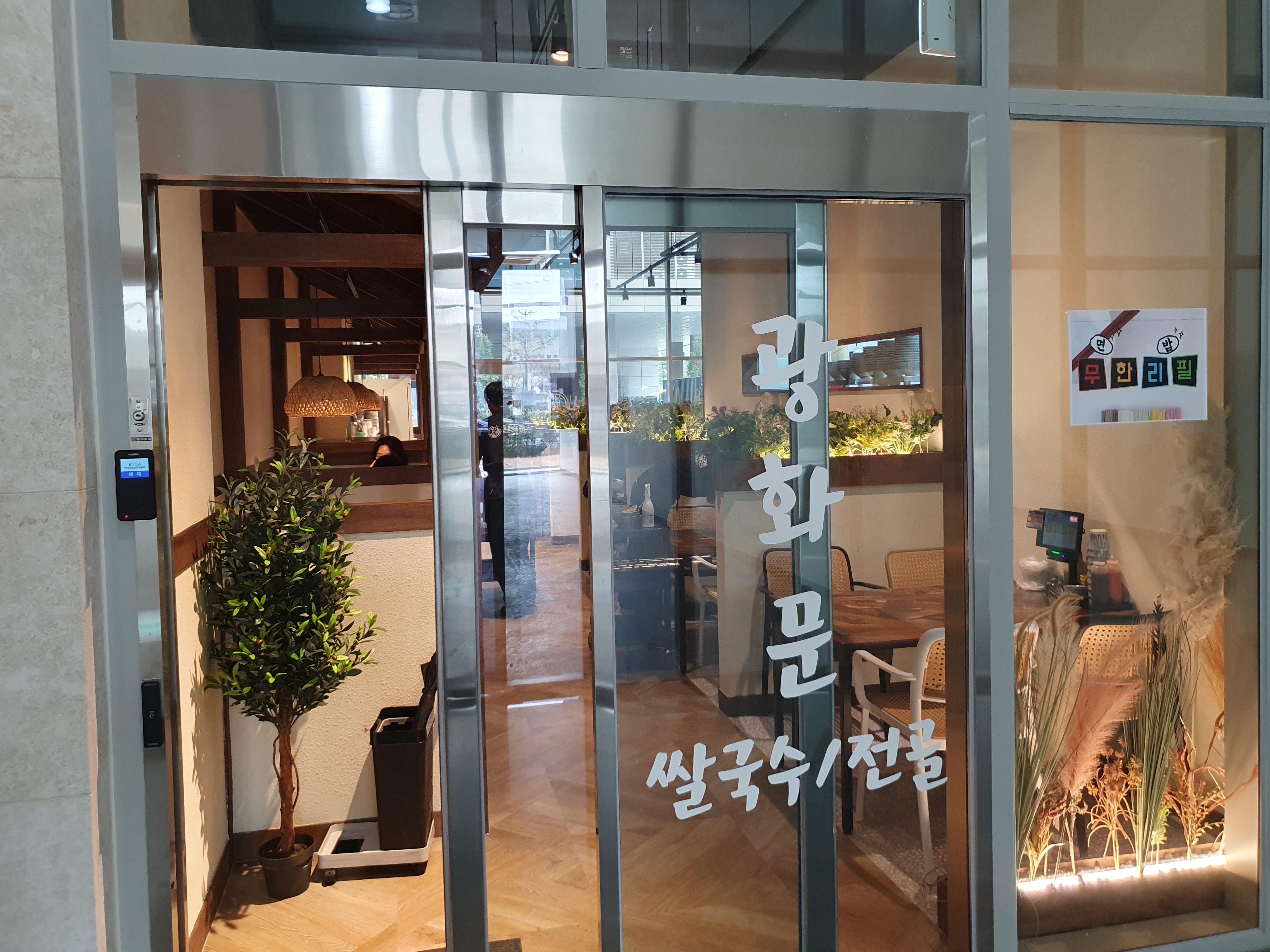 선슐랭 매장 외부입니다. 광화문 쌀국수/전골이라고 써있는 문이 복도에서 바로 보입니다.