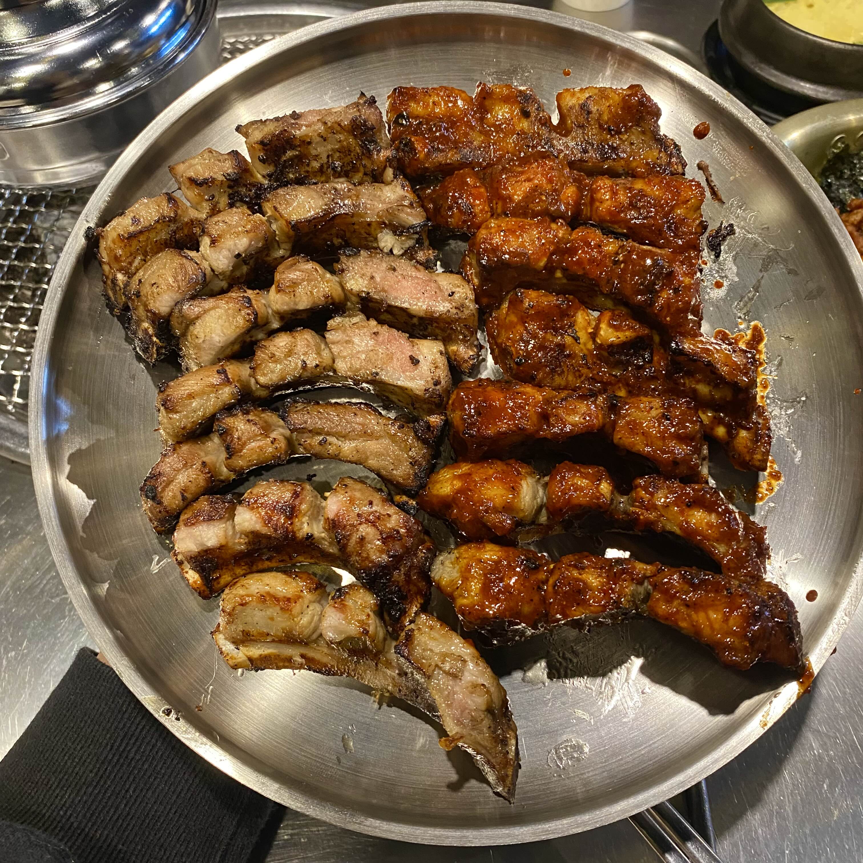 초벌되어 나온 쪽갈비를 뼈쪽을 바닥으로 두고 1~2분정도 더 구워줍니다.