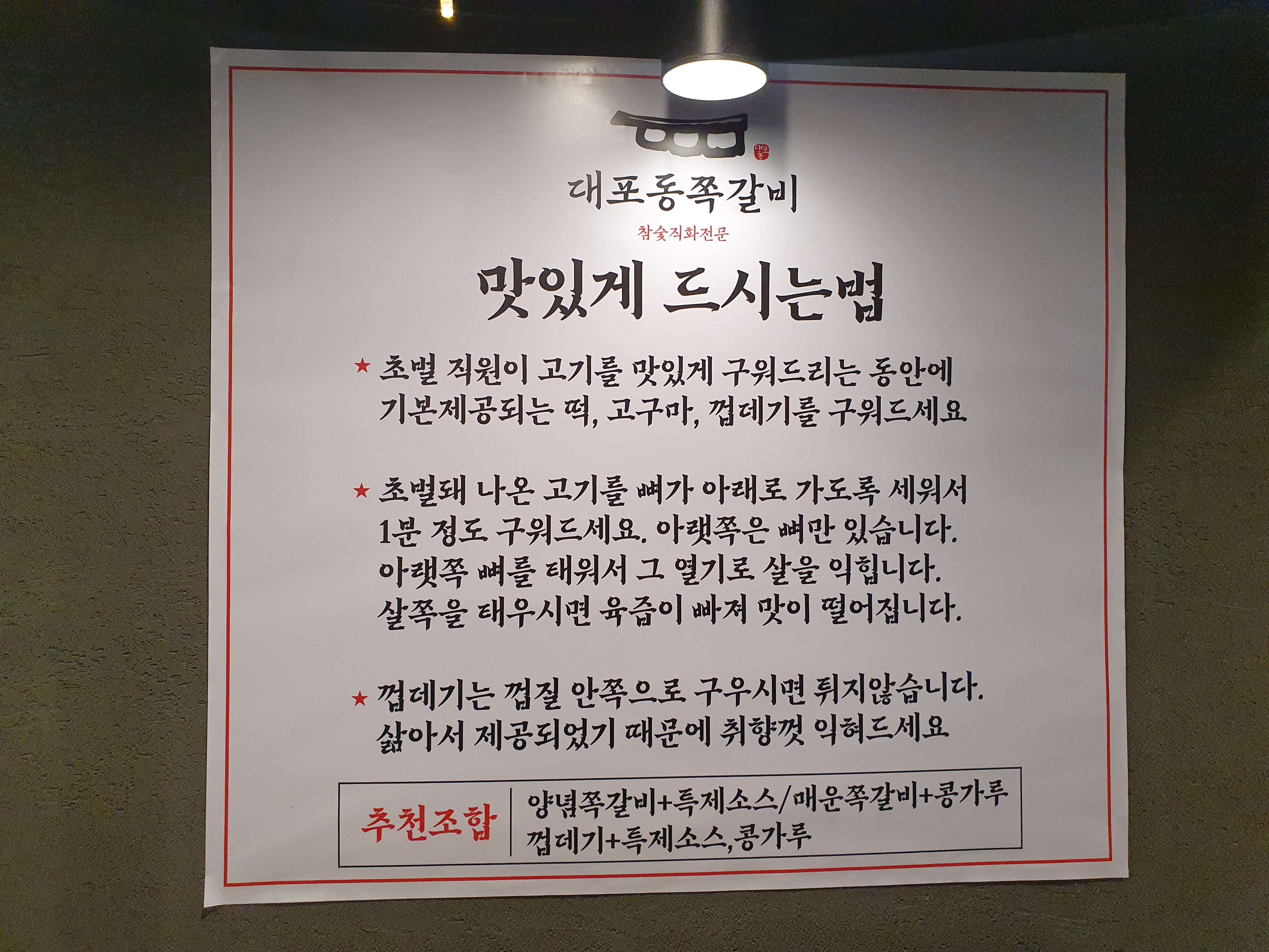 매장 한켠에 이렇게 맛있게 먹는법에 대해 쓰여있습니다.