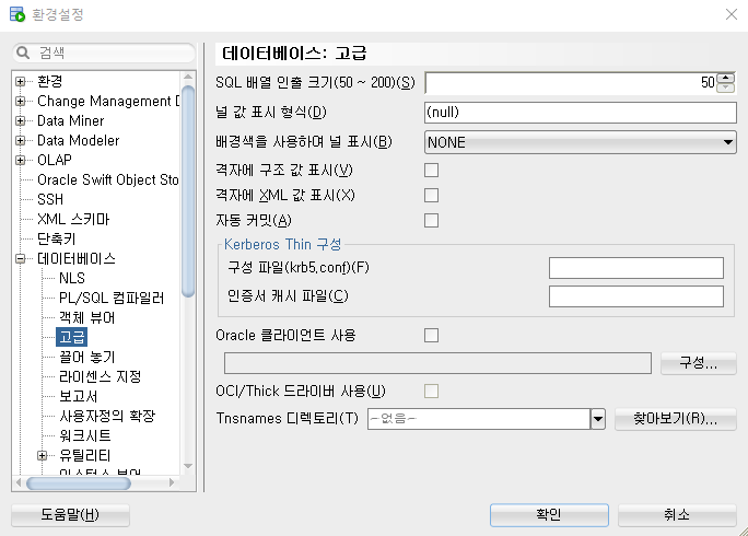 SQL Developer -> 도구 -> 환경설정 -> 데이터베이스 -> 고급