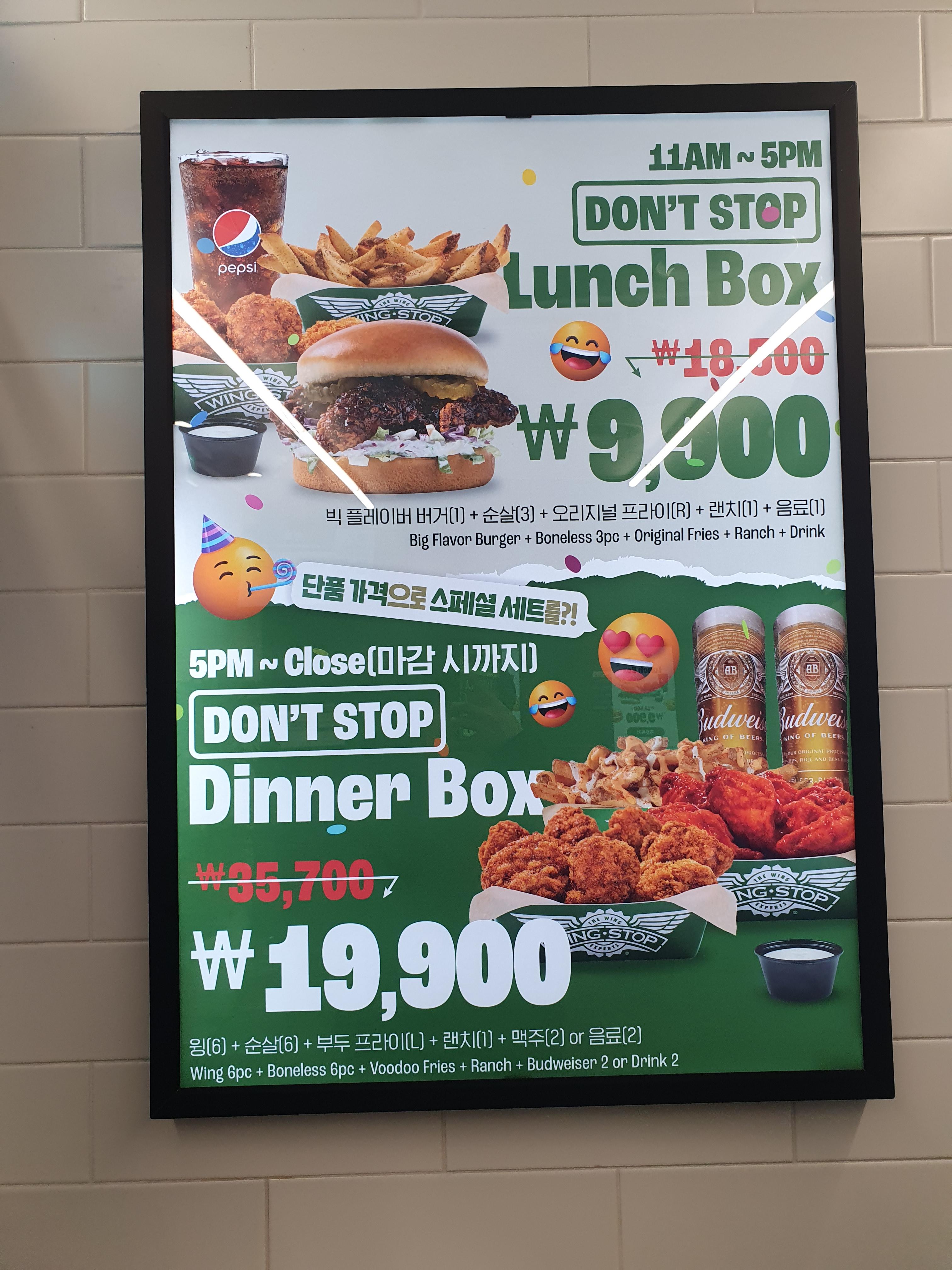 윙스탑의 메뉴판입니다.