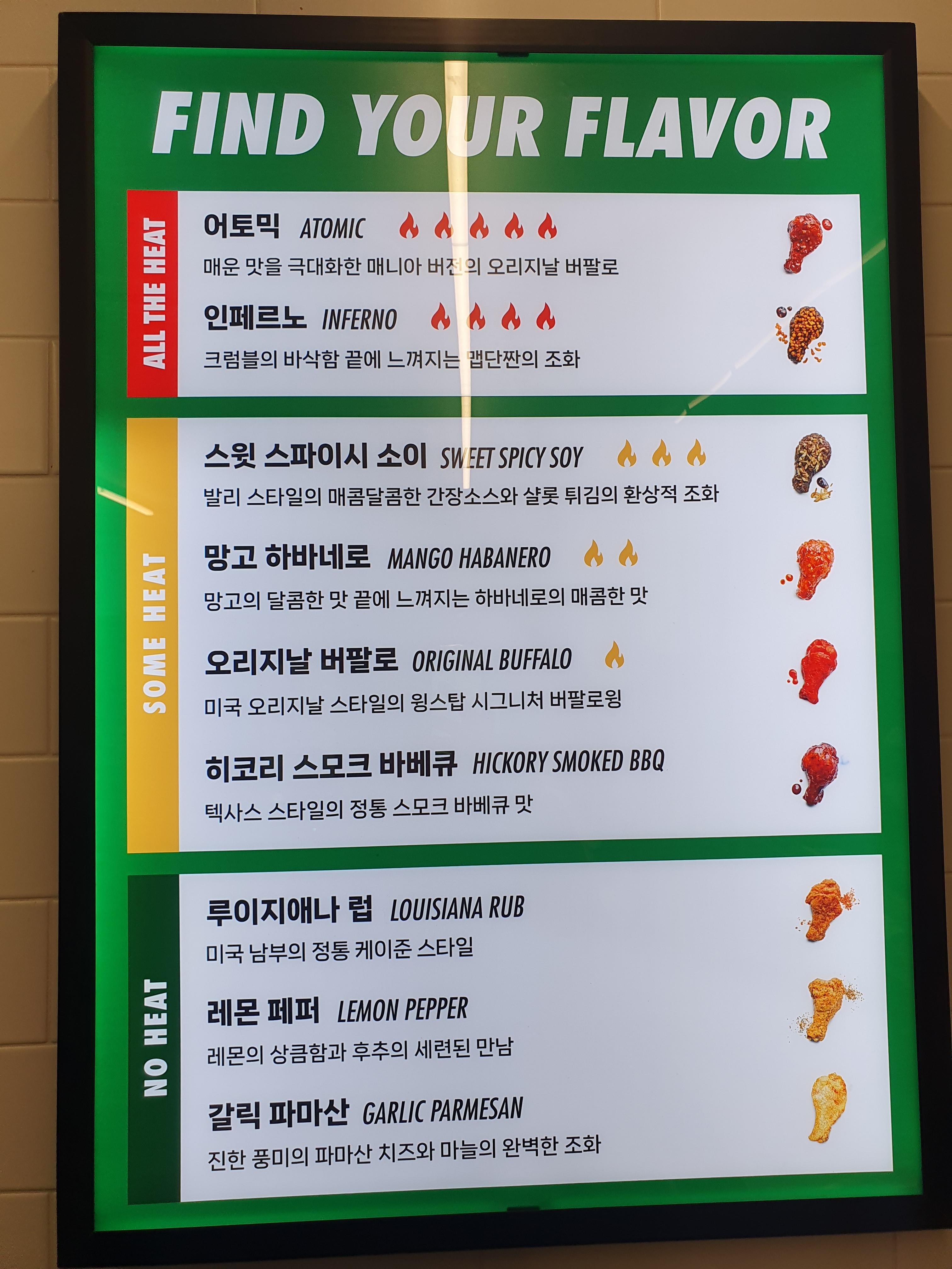 메뉴는 이렇고 제일 중요한것은 역시 치킨의 플레이버를 무엇으로 하였는가 인것 같습니다.