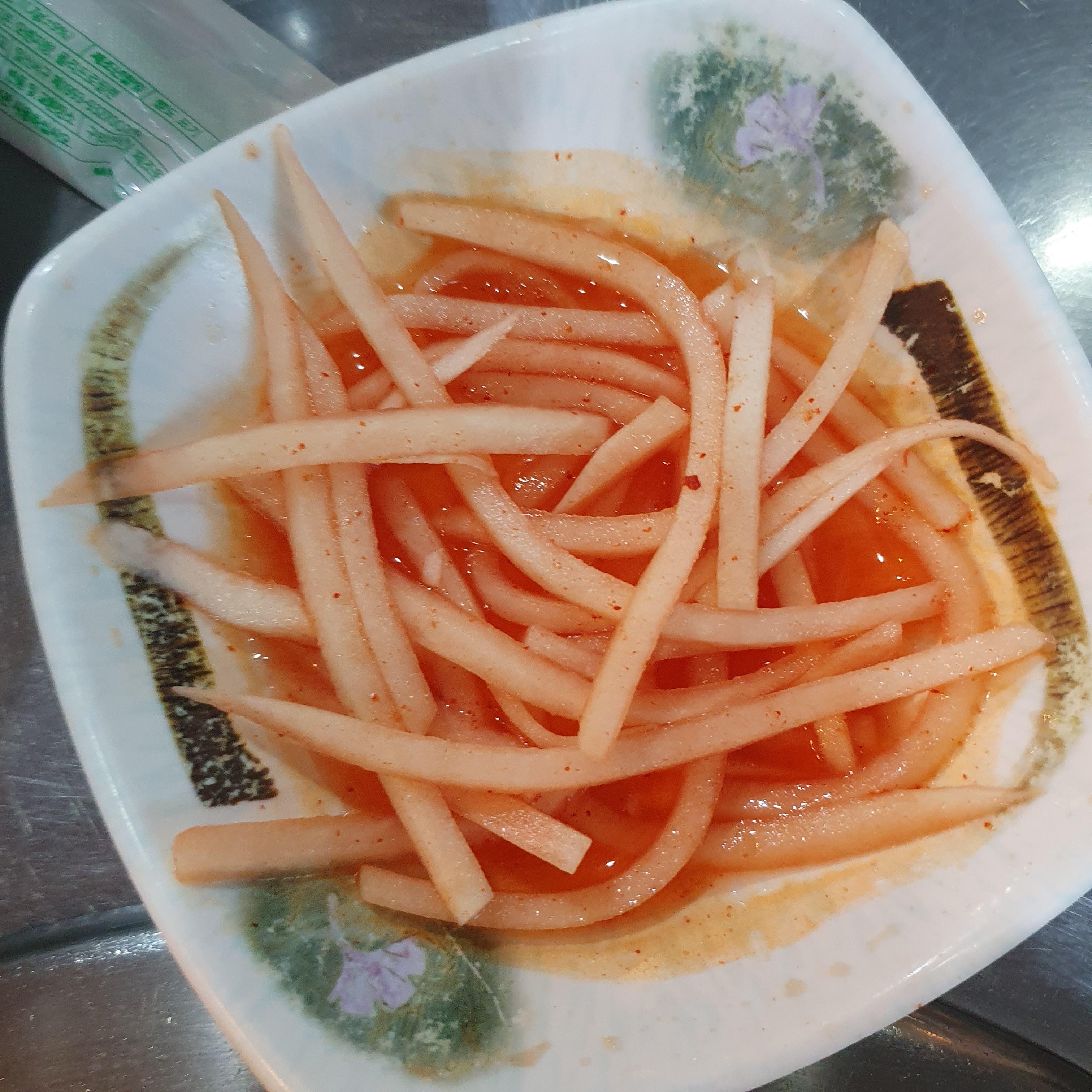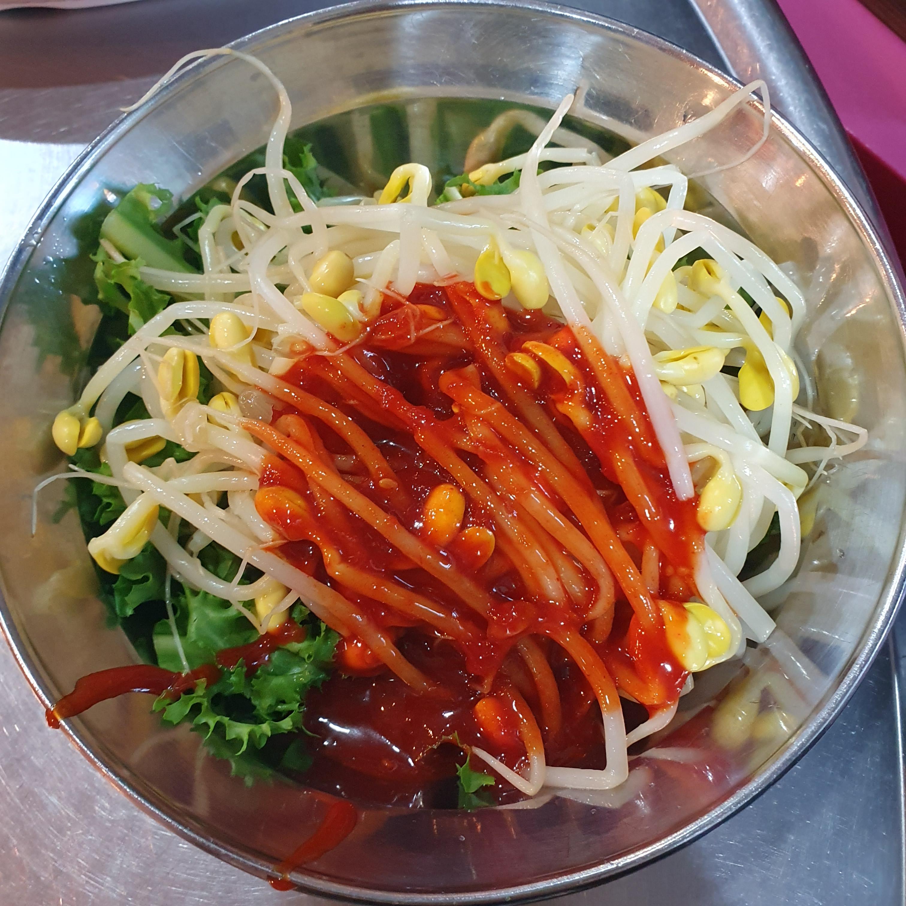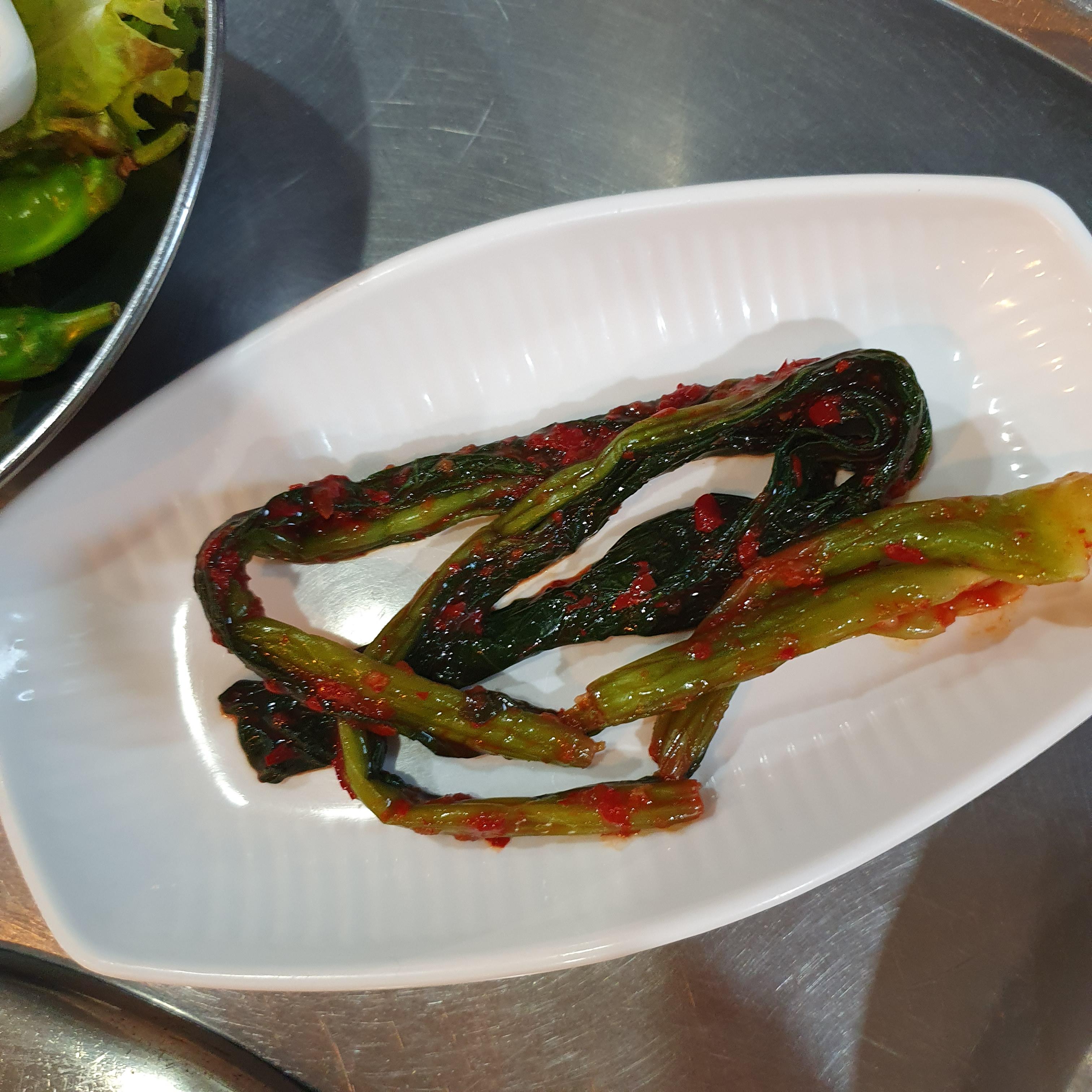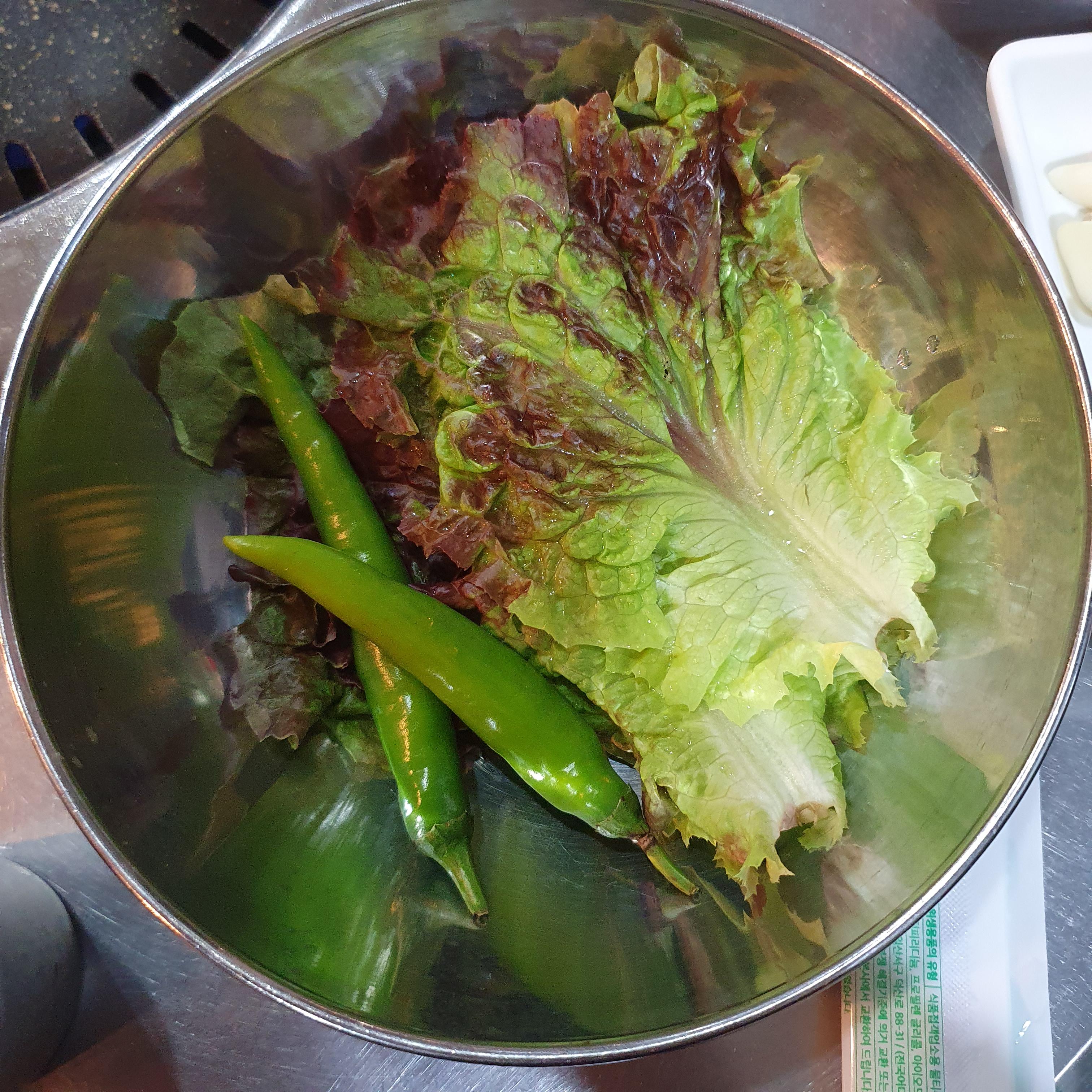 기본 반찬으로는 무생채, 상추&고추, 갓김치, 콩나물 상추 무침 나왔어요~