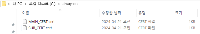 생성한 인증서를 각각의 서버로 옮겨 넣는다 (각각 MAIN, SUB 인증서를 다 가지고 있다)