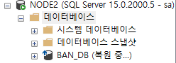 Node1 (주) 에서는 읽기 쓰기가 가능하지만, Node2 (보조) 에서는 해당 데이터베이스에 접근이 불가하다. (alwayson basic)