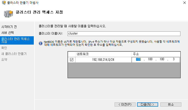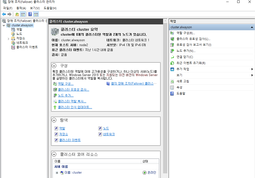 [서버 관리자 -> 도구 -> 장애조치 클러스터 관리자 -> 클러스터 만들기]