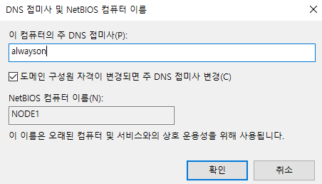 [자세히 -> 이 컴퓨터의 주 DNS 접미사 설정 (아무 명칭 가능)]