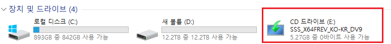 윈도우 ISO 파일 드라이브로 돌아와 경로를 확인한다.