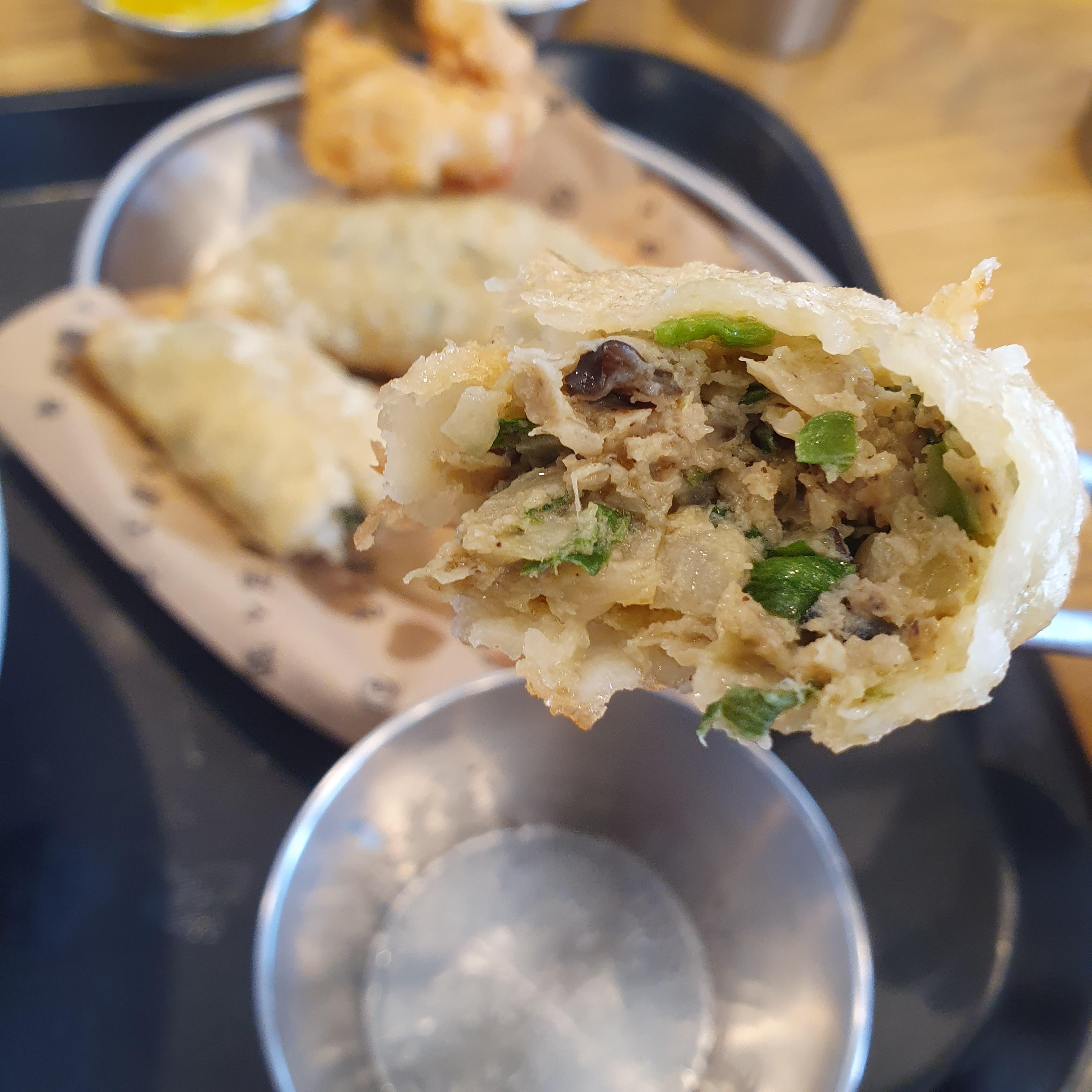 육고명튀김교자는 보통의 만두튀김같닥도 생각했는데, 한입 먹어보니 너무 속이 육고명으로 꽉차 있어서 놀랐습니다.