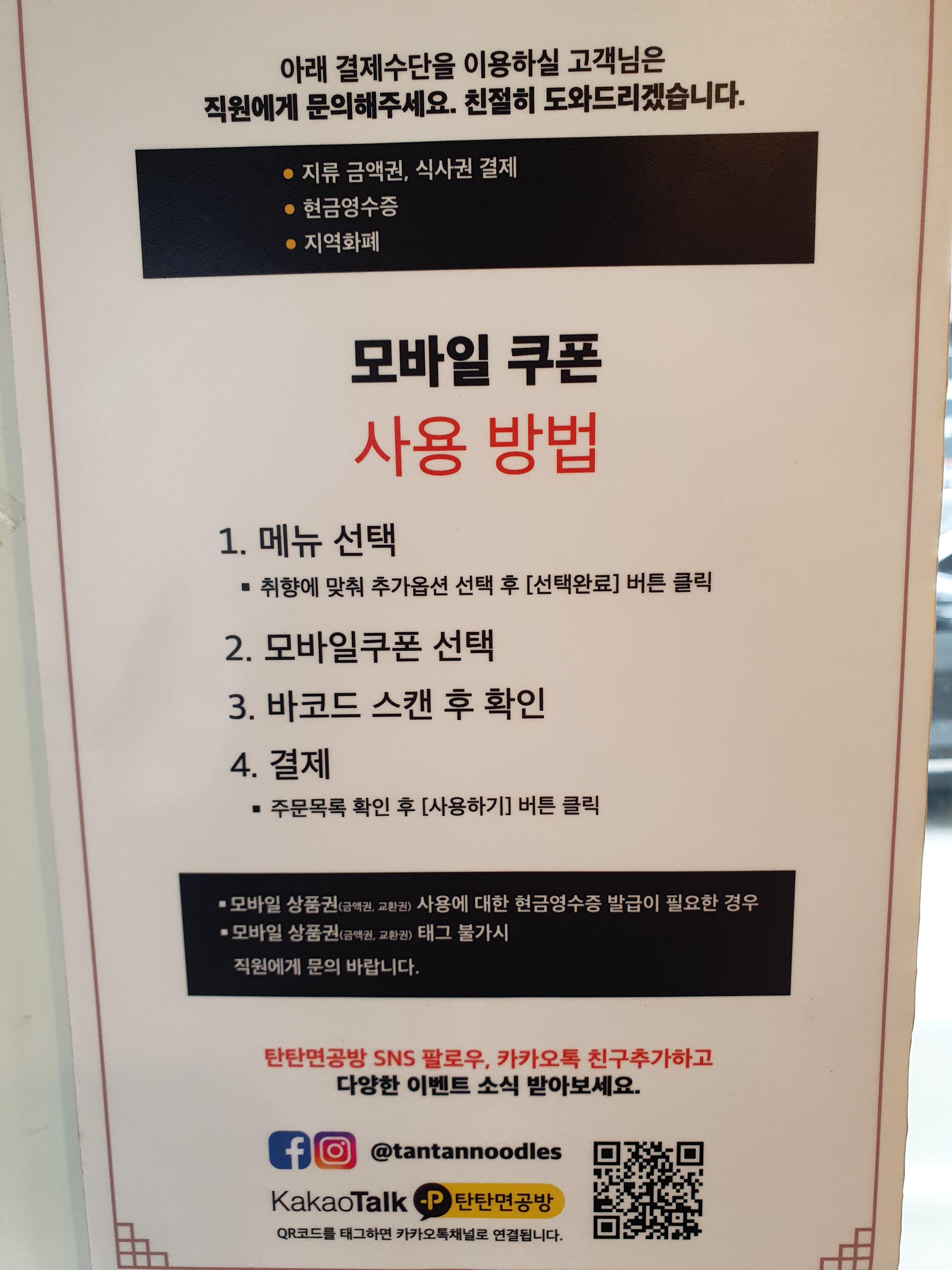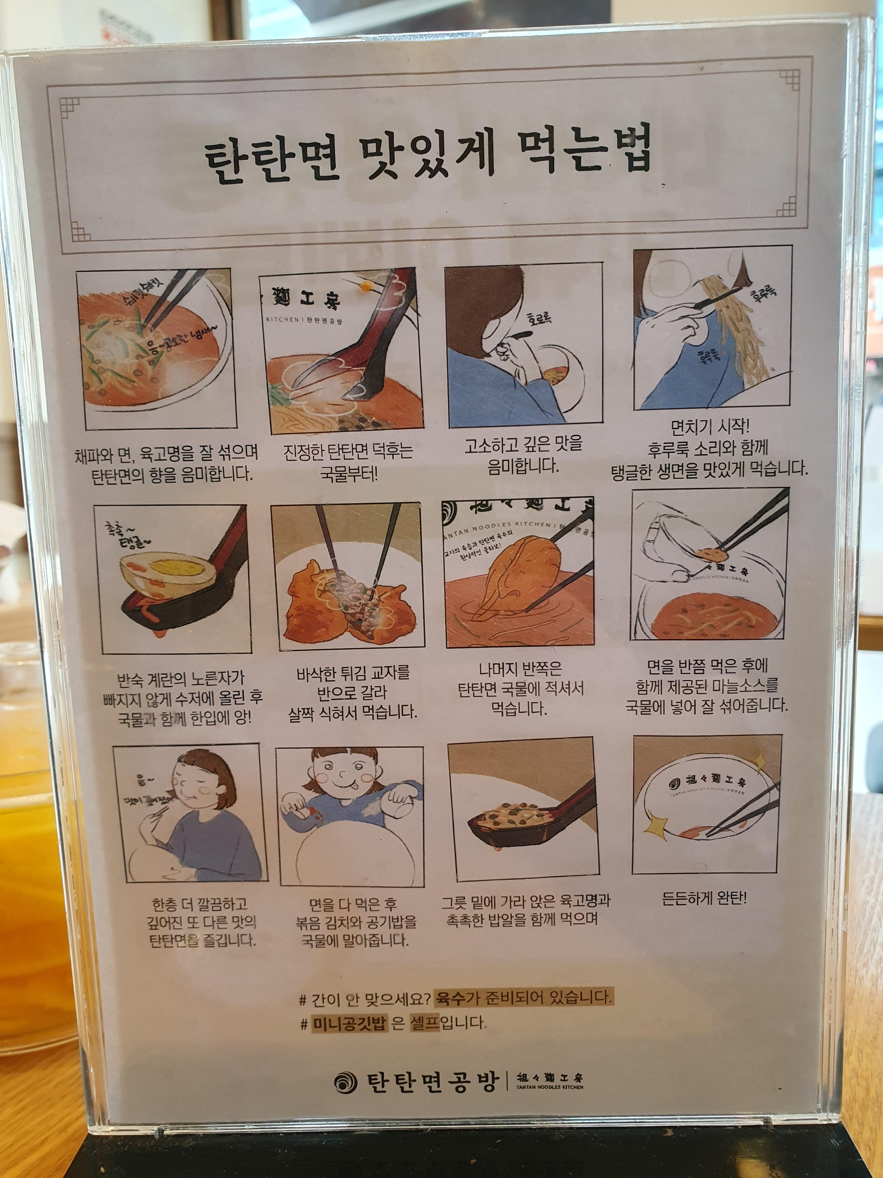 자리마다 탄탄면 맛잇게 먹는 방법이 쓰여있는데요.