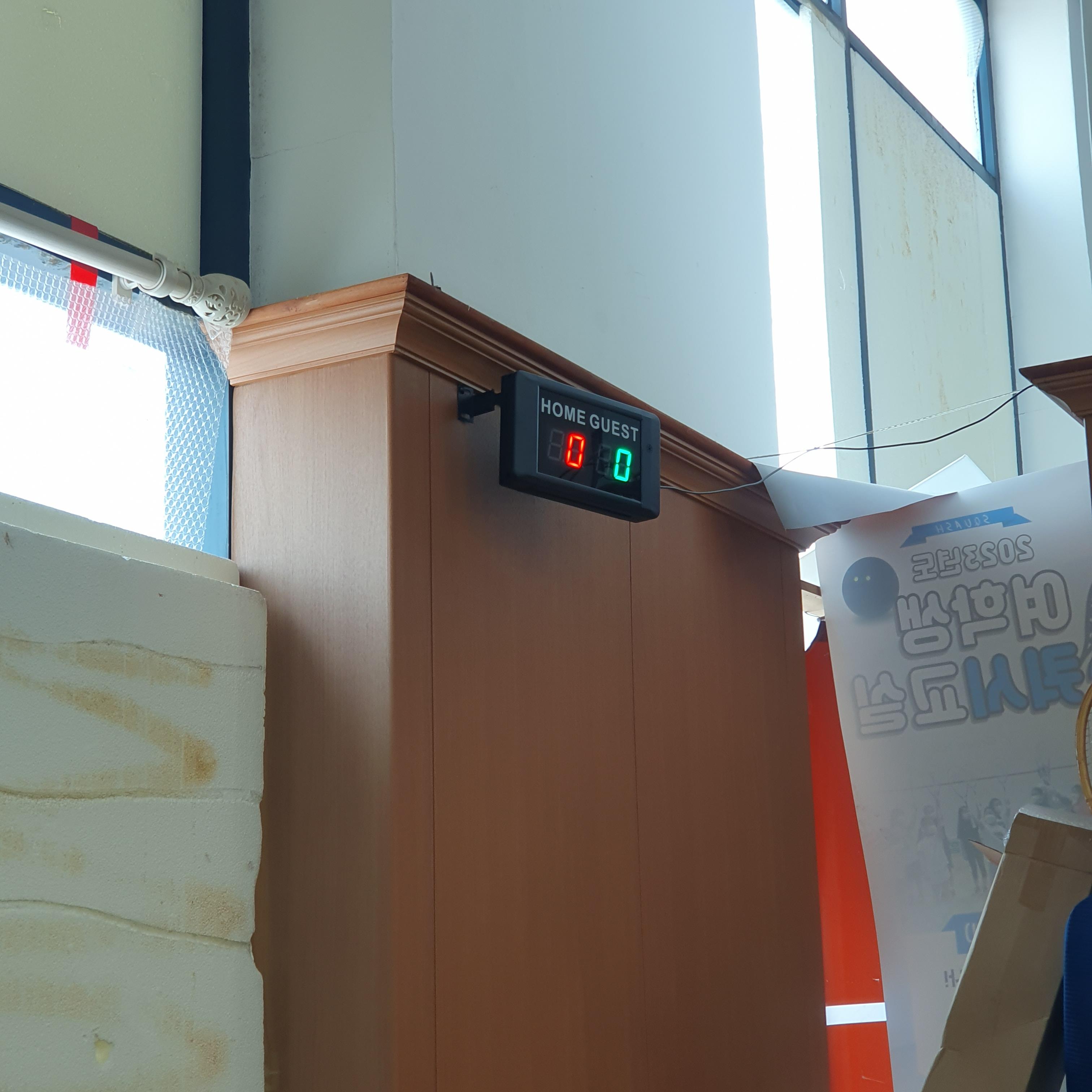 A코트는 코트 옆 B코트는 코트 뒷편에 전자 점수판이 붙어있어, 리모컨을 이용하여 점수를 올리고 내립니다.