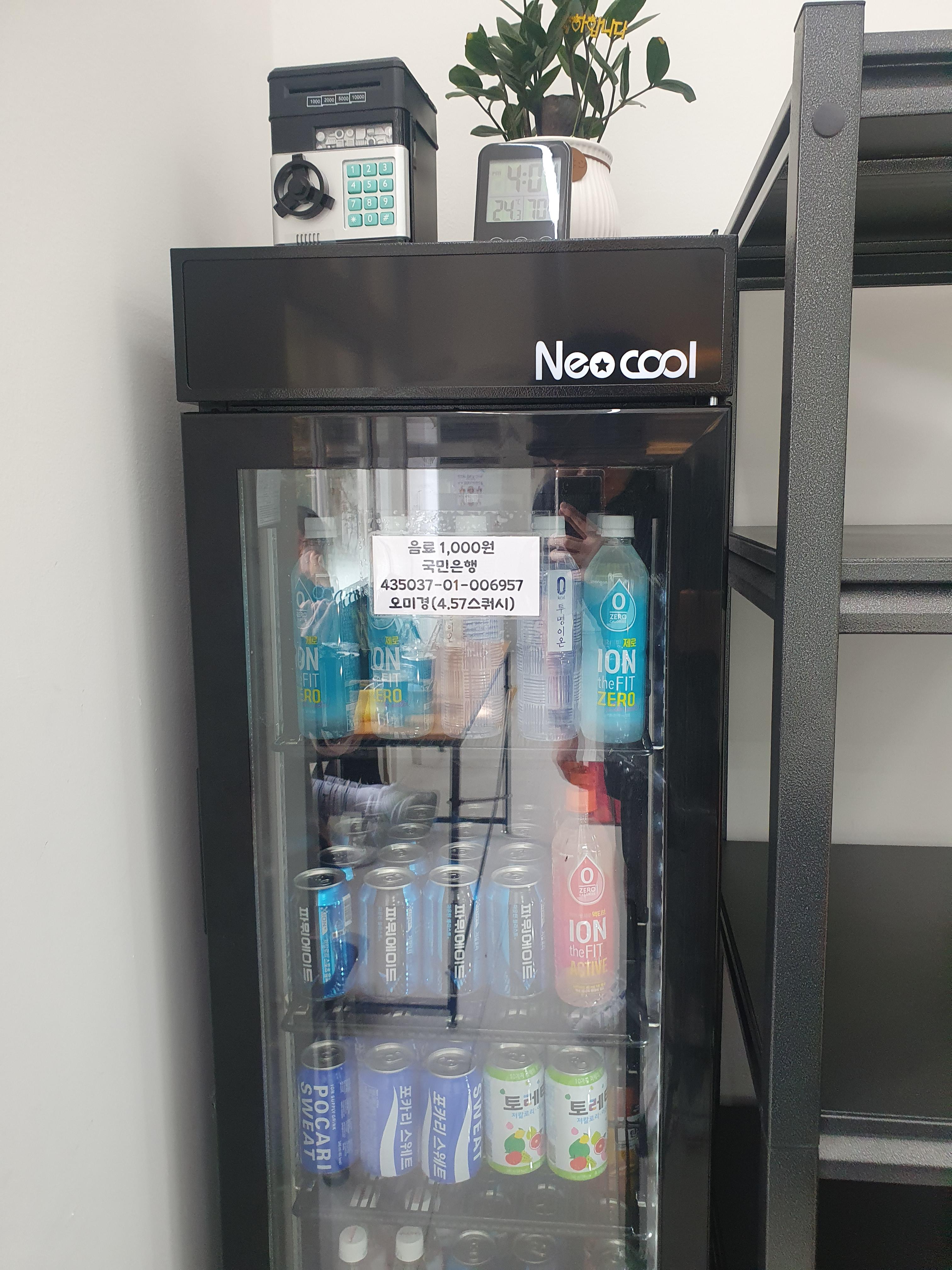 음료수 가격이 나름 저렴하네요.ㅎㅎ 정수기는 일반적인데... 옆에 얼음이 준비되어있습니다...미쳣다 진짜