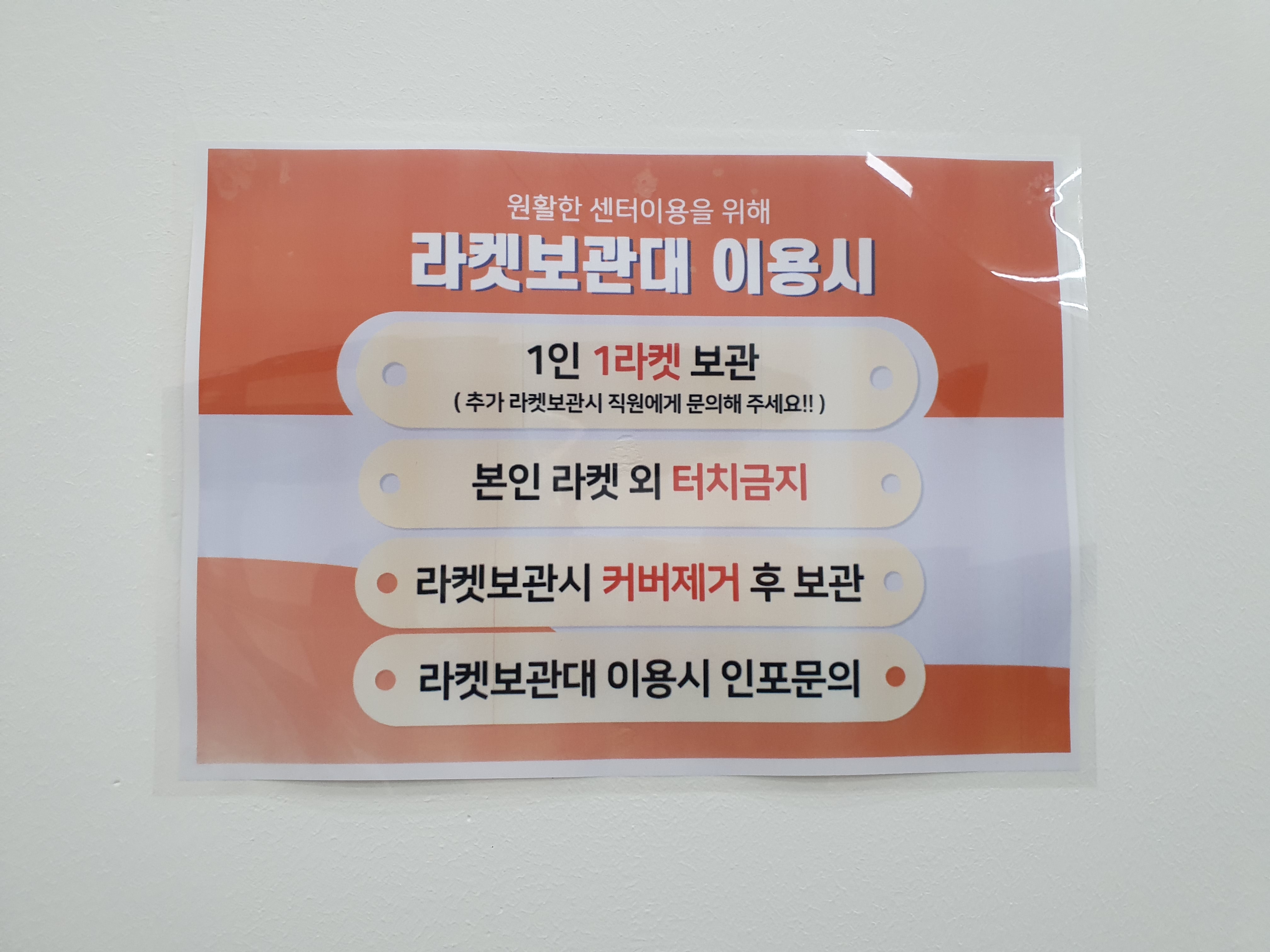 옷장을 지나면 바로 4.57 스쿼시의 회원들의 라켓이 놓여있는 곳 입니다.