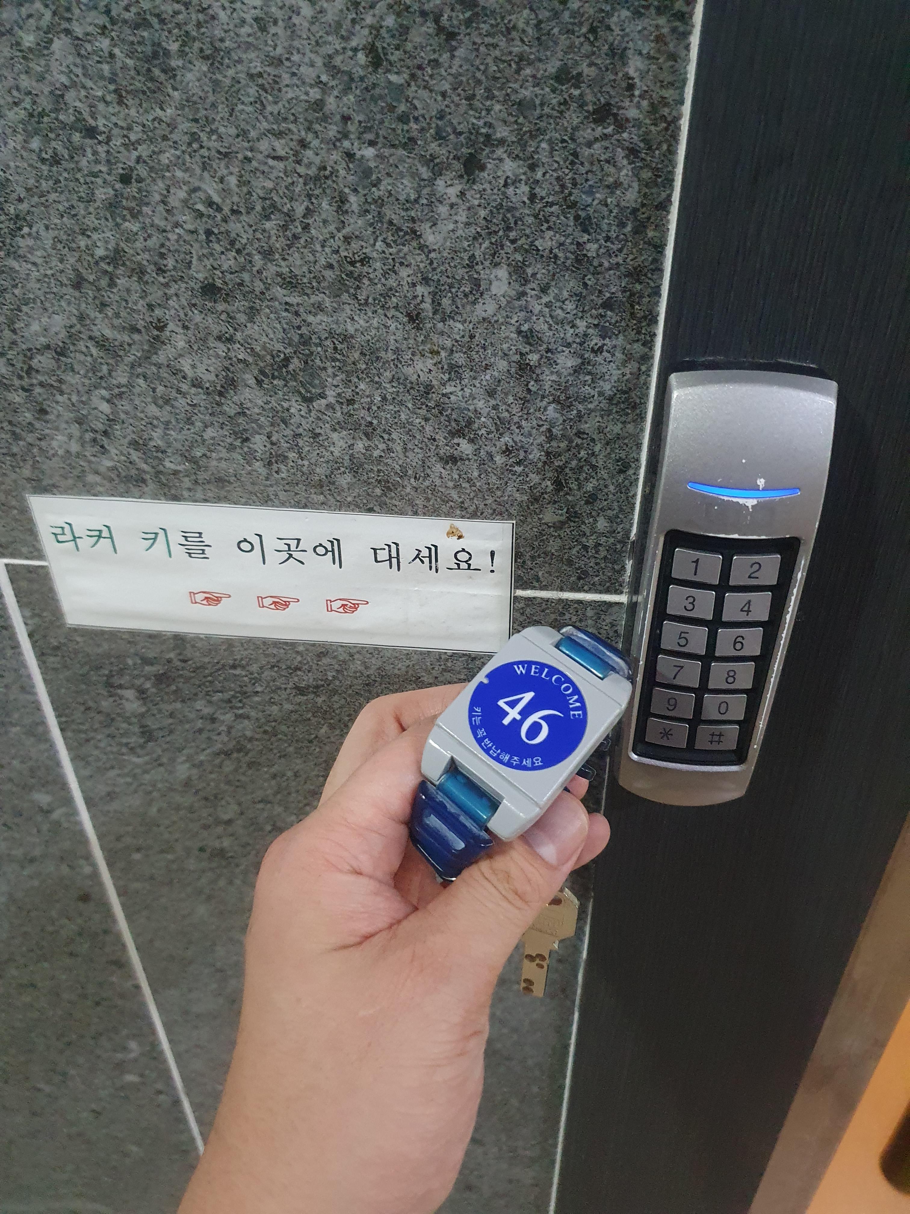 결제와 별개로 개인 소지품을 맡기고 들어가야합니다. 카드, 차키, 핸드폰 등 다시 열쇠를 반납하기 위해 한가지 맡기게 됩니다.