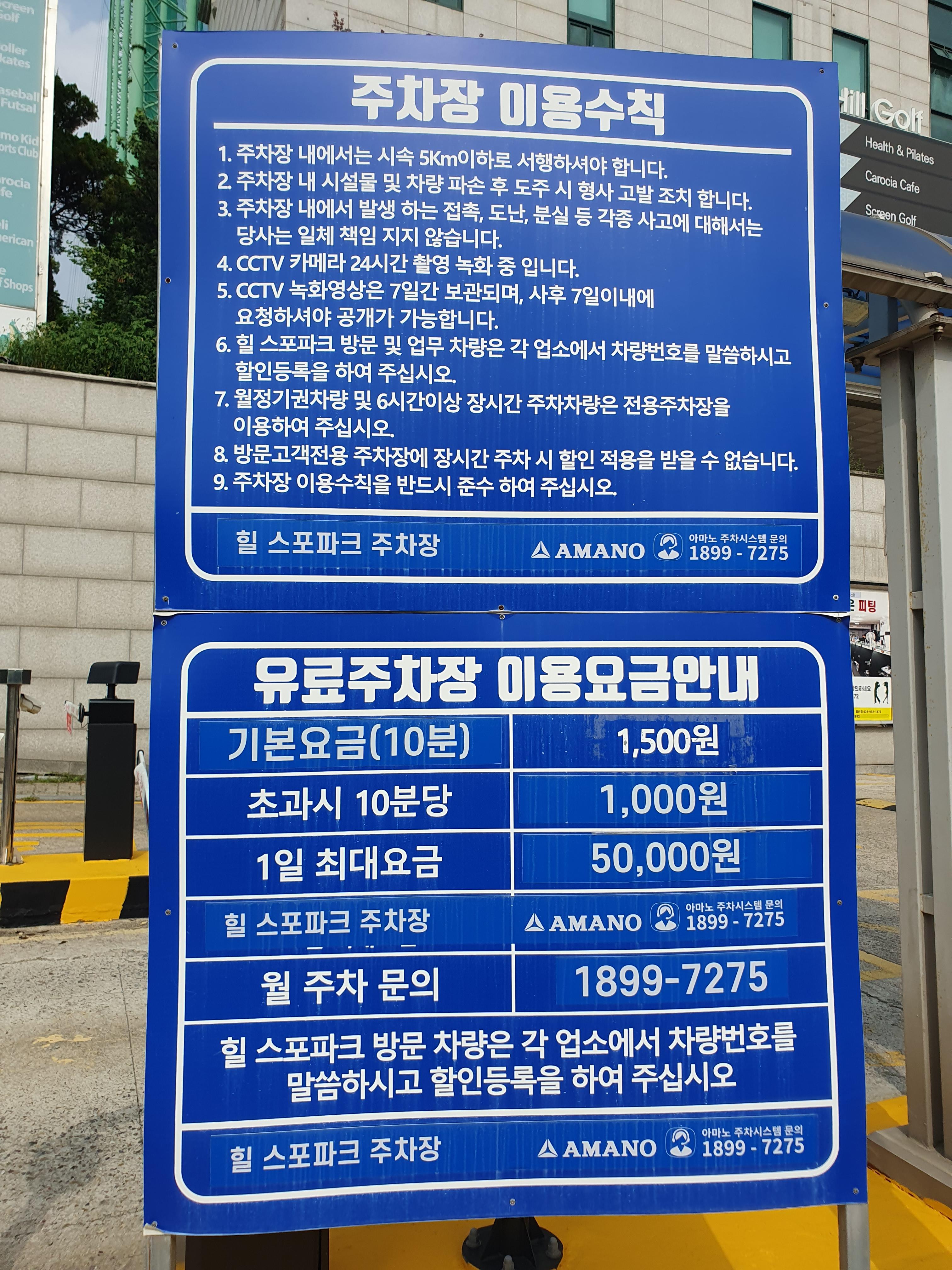 주차요금은 1시간 무료주차 이후 요금이 발생하는데요. 스쿼시장 이용 시 30분당 600원으로 요금 할인을 받을 수 있으니 꼭 참고해주시기 바랍니다.