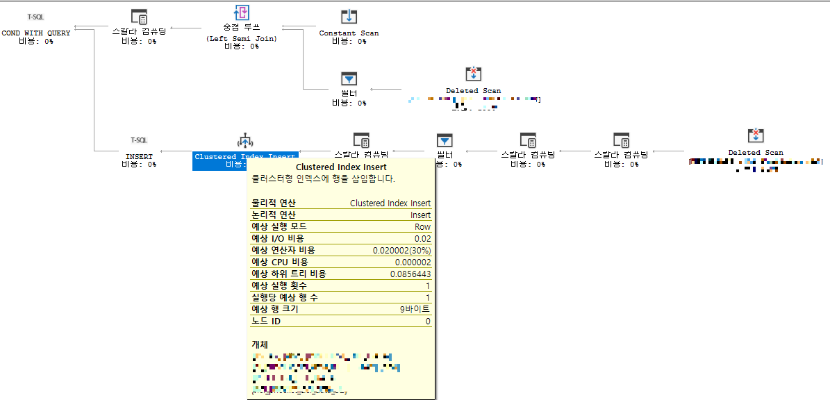 이리저리 트리거의 로직도 포함되어 있지만, Insert하는 부분에서는 결국 Clustered Index Insert에서 비용이 발생하는 것을 확인하였다.