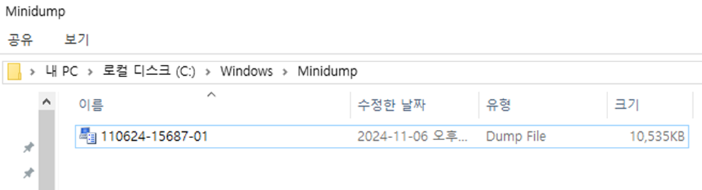 이리 저리 검색하던 중 0x00000133 에 대해 검색하다보니, C:\Windows\Minidump 라는 경로에 DMP파일이 또 생긴다는 것을 알고 확인해보았다.