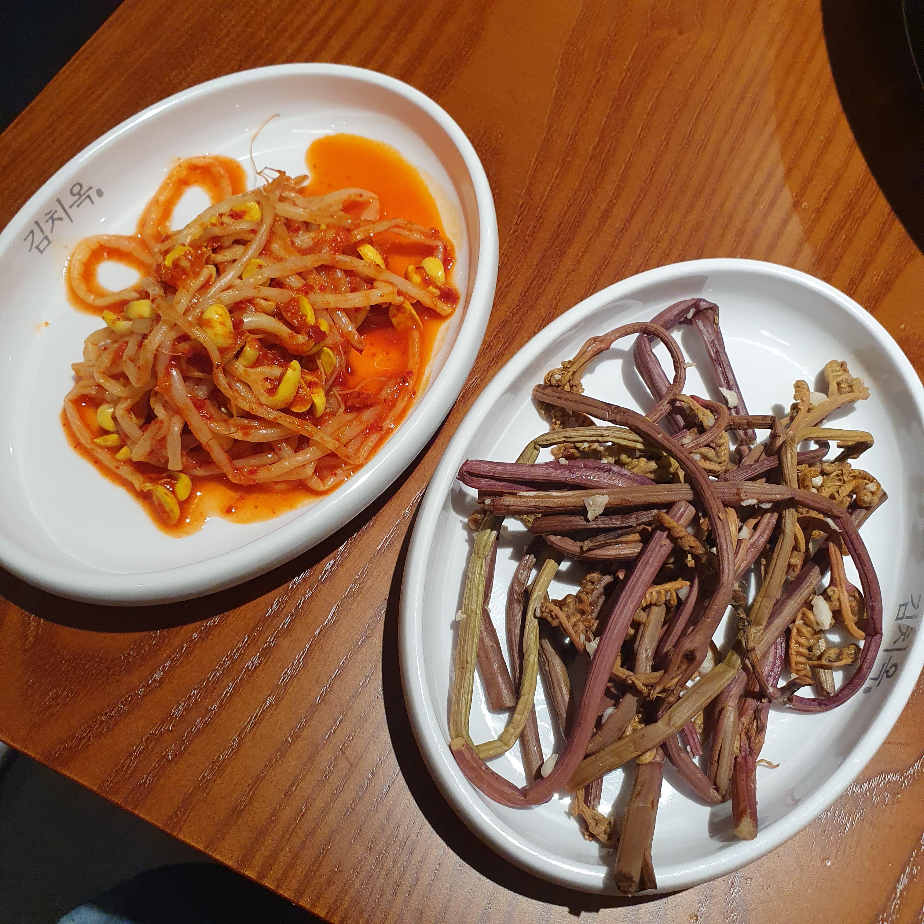 콩나물과 고사리는 솥뚜껑에 같이 굽는 용도, 배추김치도 굽는 용도입니다.