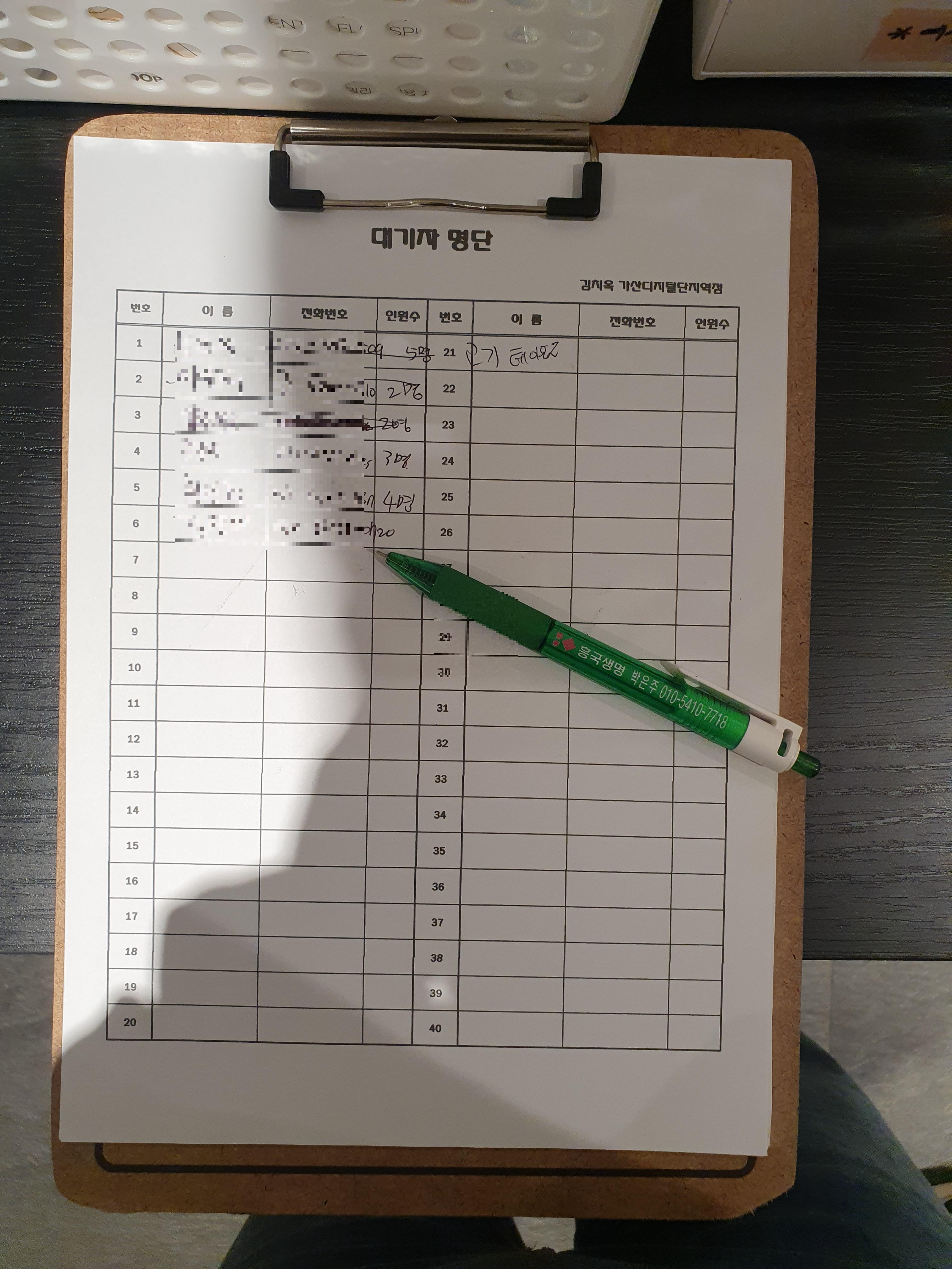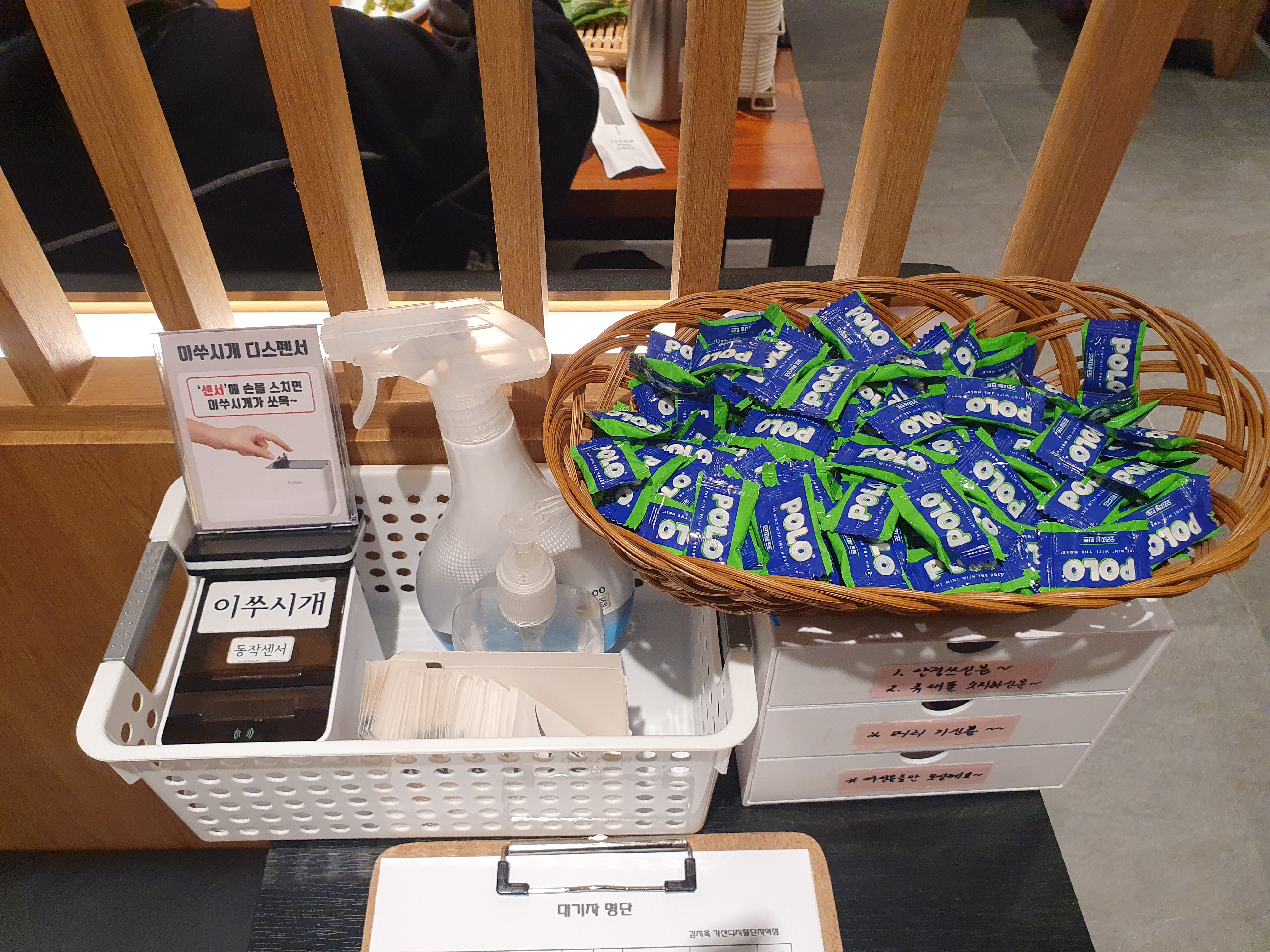 매장 초입의 대기명단 옆에는 이쑤시개 및 폴로 페브리즈 등이 준비되어있습니다.