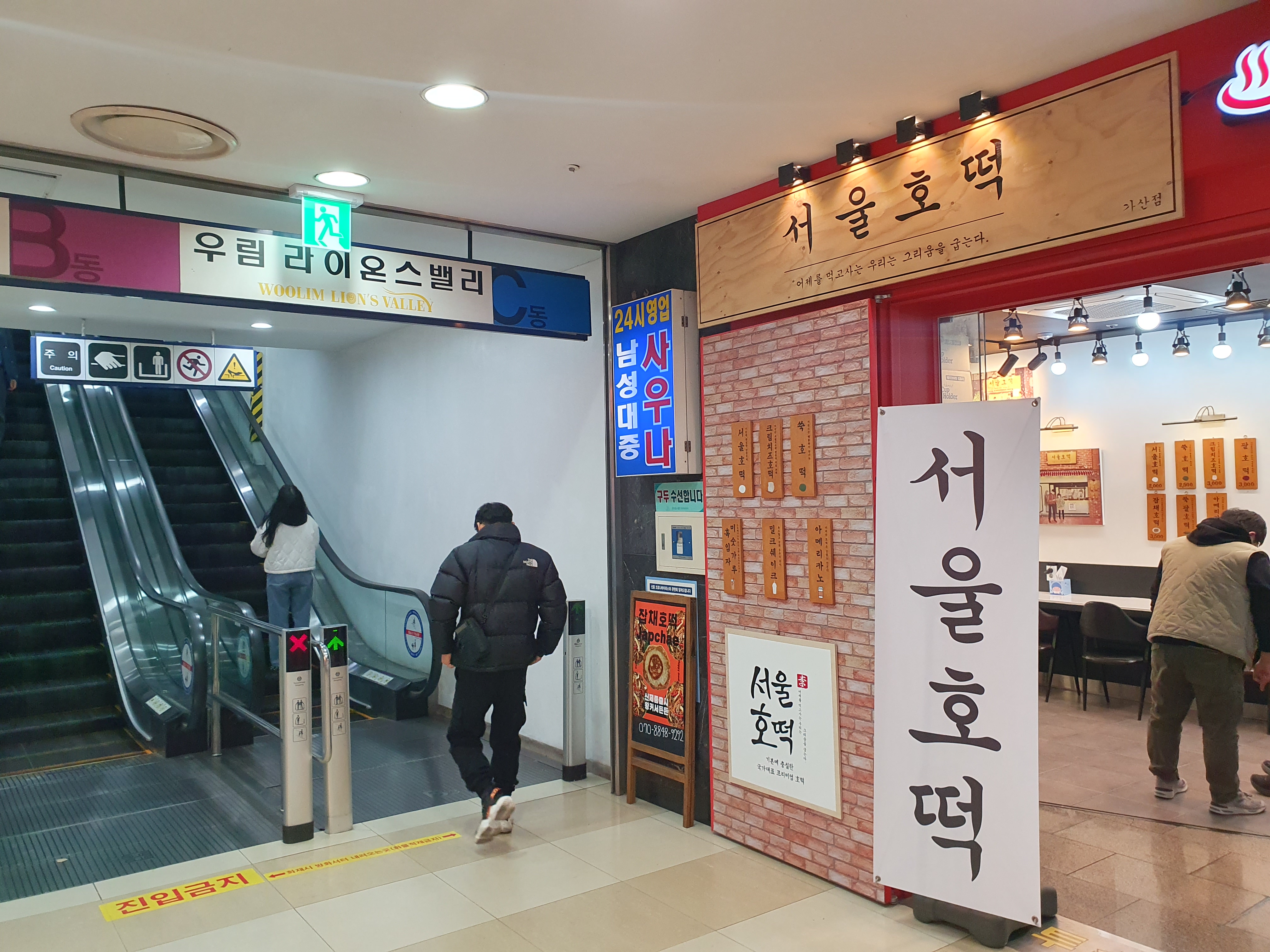 서울호떡 가산점은 가산디지털단지역 7호선에서 우림라이온스밸리 B동으로 가는 연결 통로 바로 앞에 위치하고 있습니다.