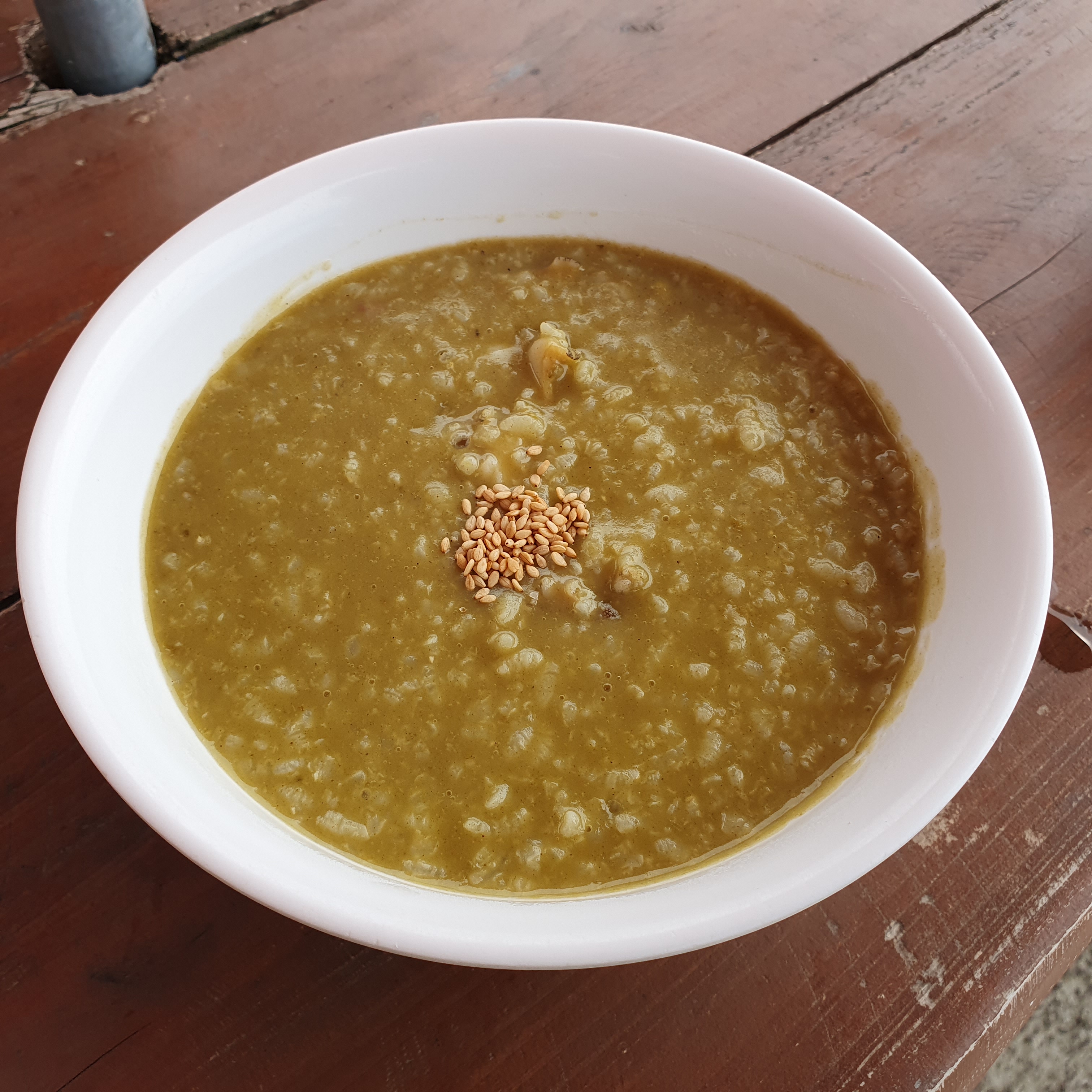 바다를 바라보며 조금 기다리다보니, 전복죽이 나왔는데요.