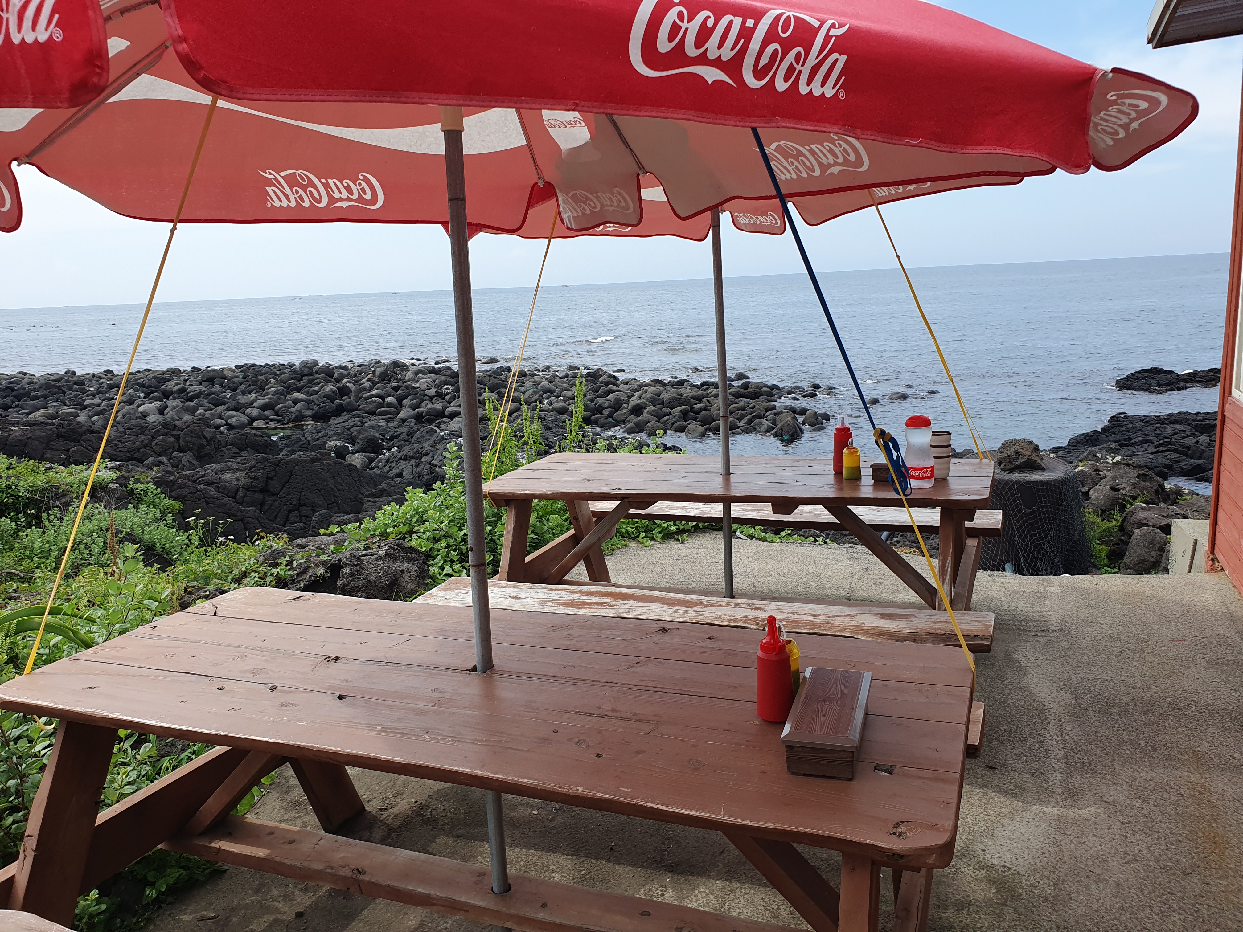 이렇게 넓고 시원한 바다를 바라보며, 늦은 점심식사를 해결했는데요.