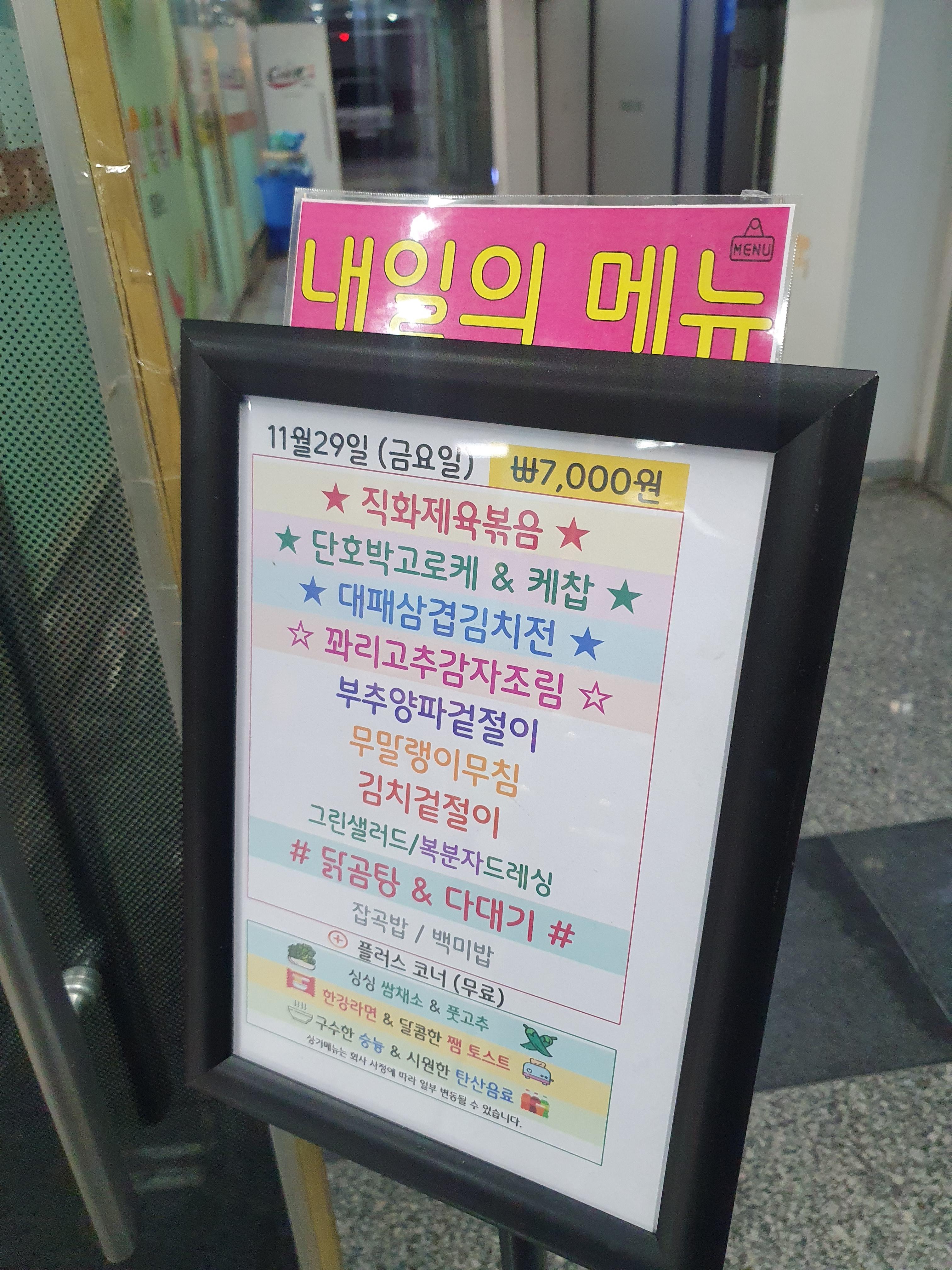 쿡플러스는 매장앞에 입구부터 오늘의 메뉴 내일의 메뉴를 게시해 두더라구요! 아주 보기좋습니다 메뉴를 먼저 알 수 있다니.