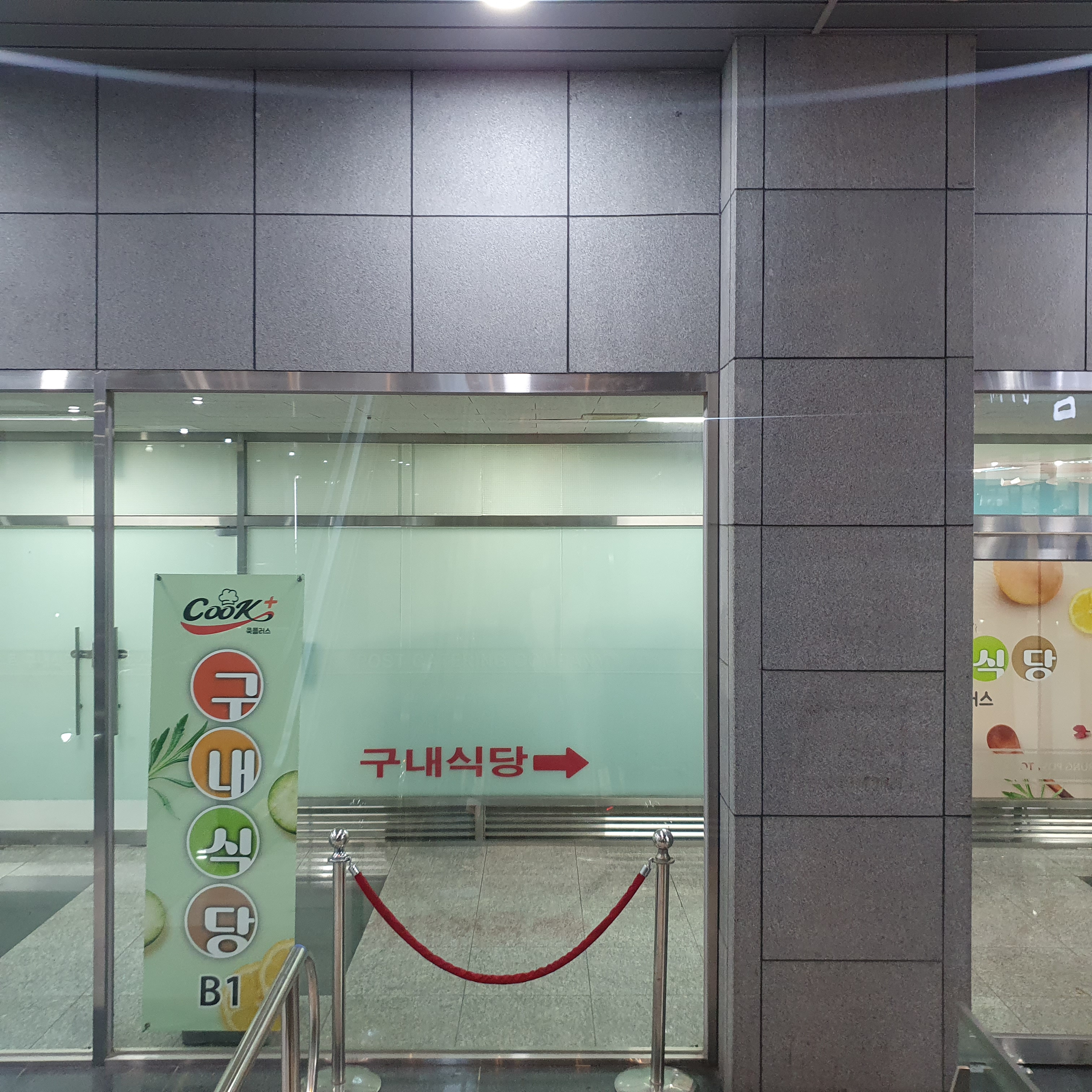 대륭포스트 5차 지하1층에 에스컬레이터를 이용하여 내려가면 바로 구내식당 안내판이 보이는데요, 반대편으로 가면 다른 한식뷔페가 위치하고 있더라구요.