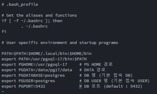 export PGHOME=/usr/pgsql-17 # PG HOME 경로