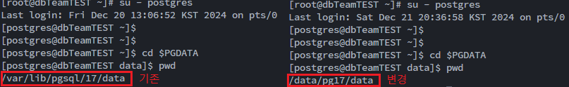 * -D /data/pg17/data : 위에서 생성하고 권한을 부여하였던 디렉토리에 데이터 경로를 지정