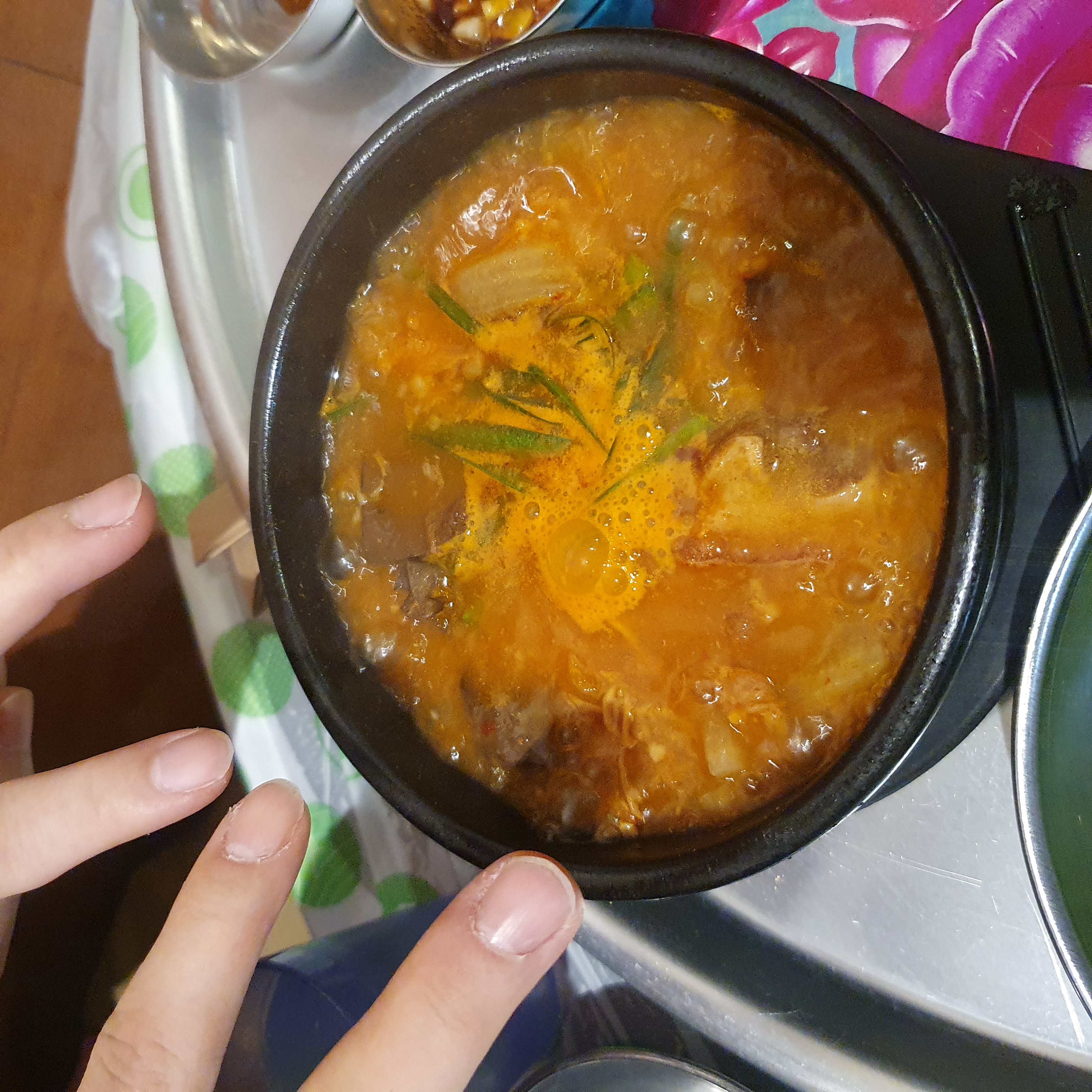 기본적인 상차림과 선지해장국이 나옵니다.