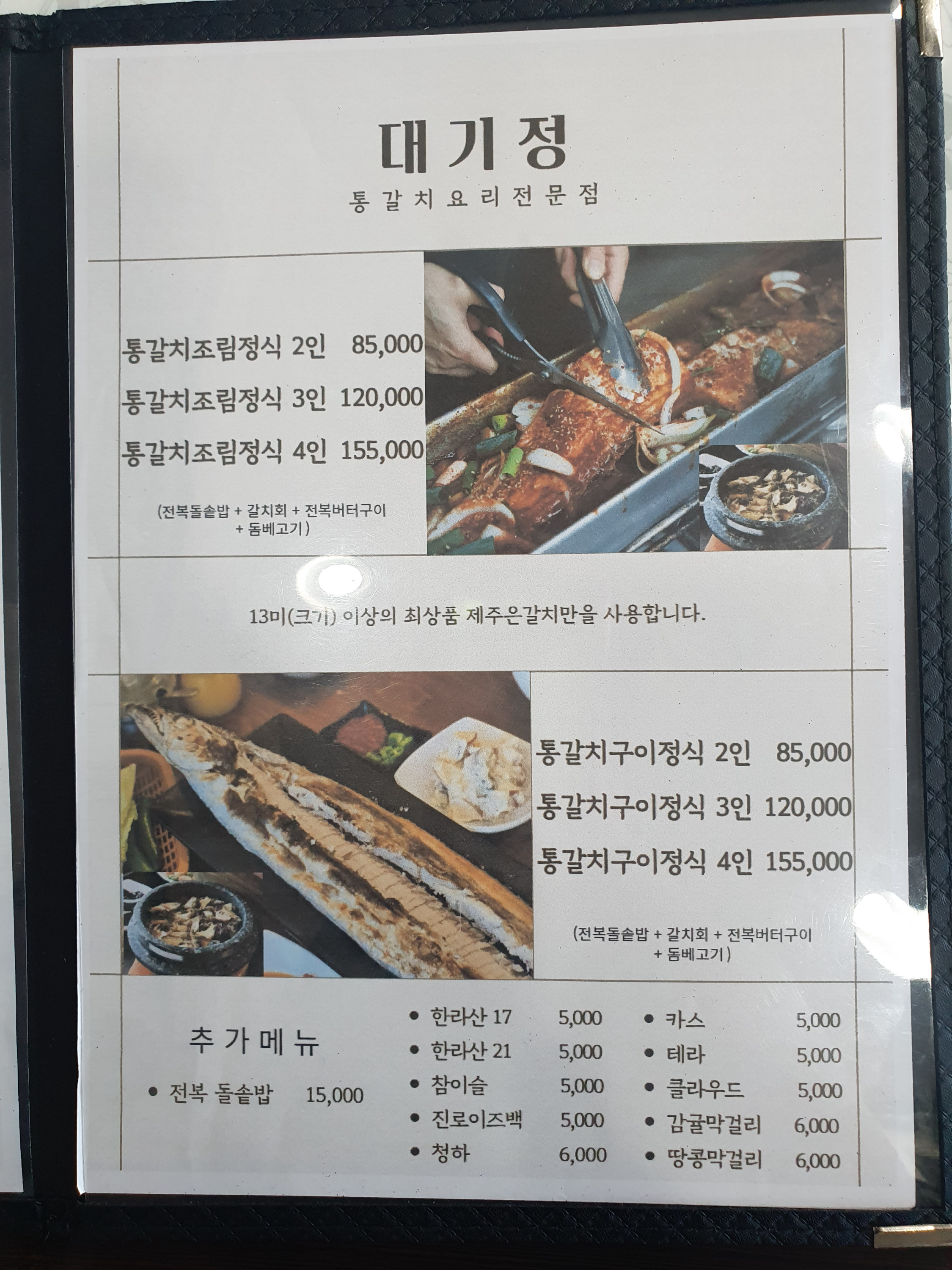 제주도에서 통갈치를 먹고싶다면 이곳 대기정 강추합니다.