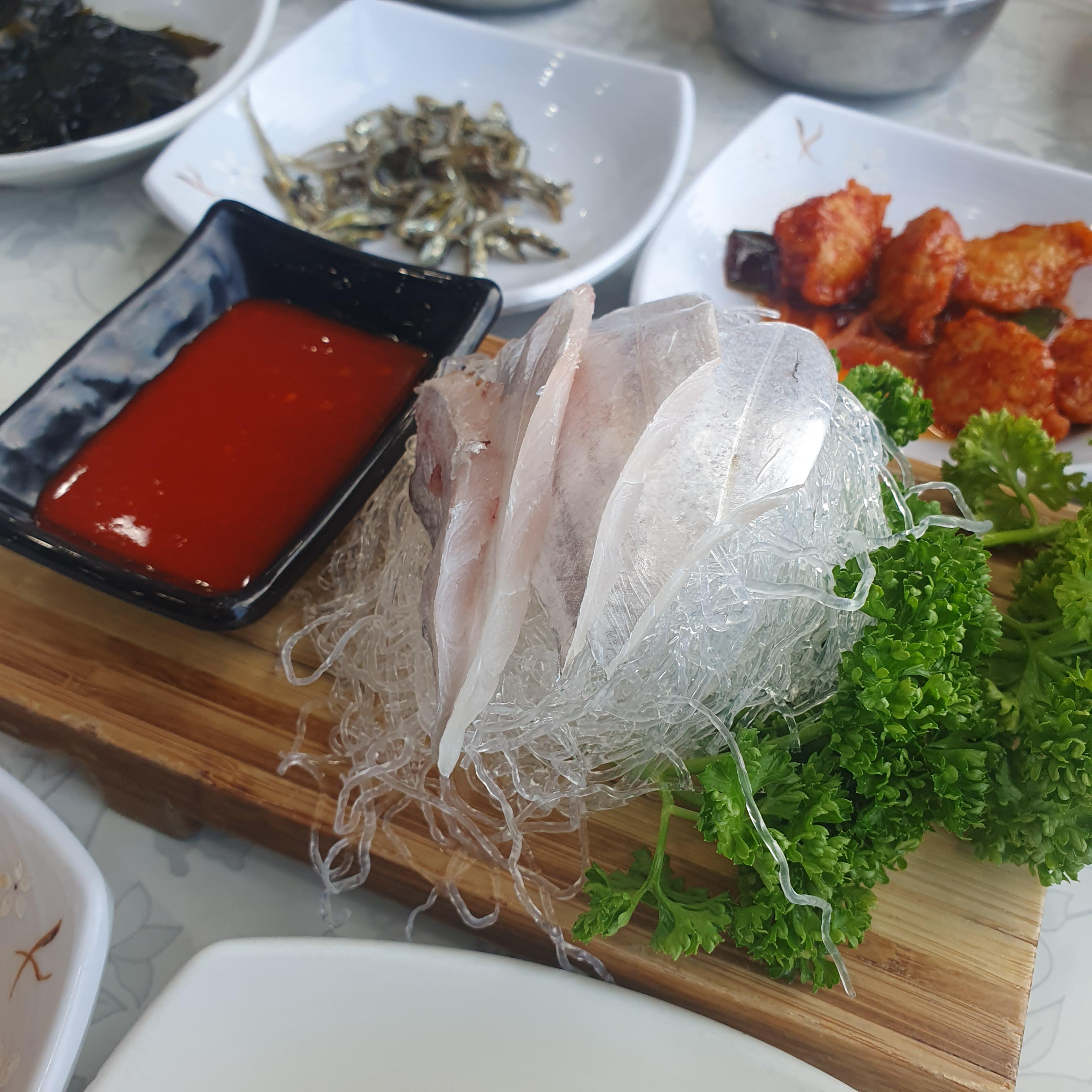 특히 기본반찬중에 중요한 반찬으로는 버터전복구이, 돔베고기, 갈치회가 나옵니다.