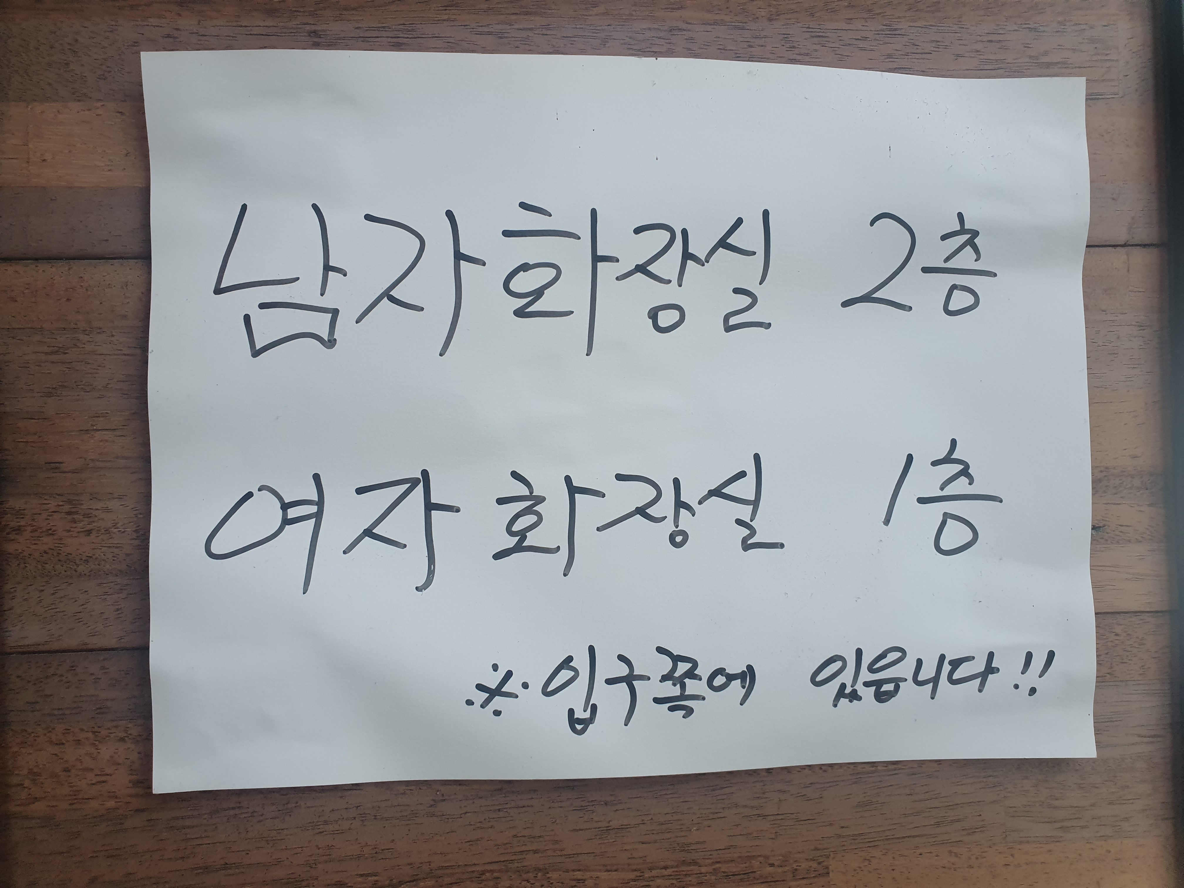 남자화장실은 2층, 여자화장실은 1층에 위치하고있습니다.
