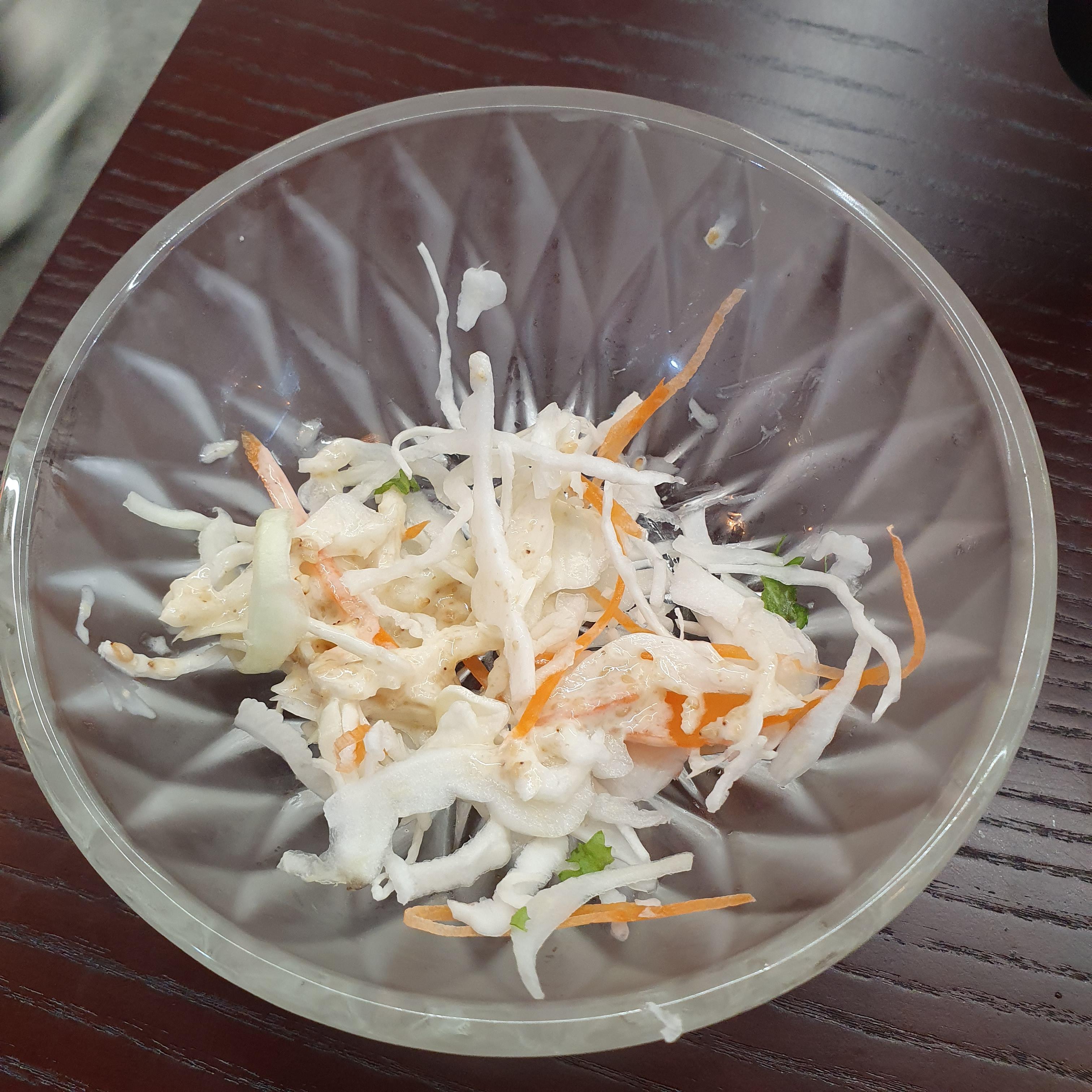 샐러드인데요. 사실 까먹고 조금 먹다가 찍었습니다.