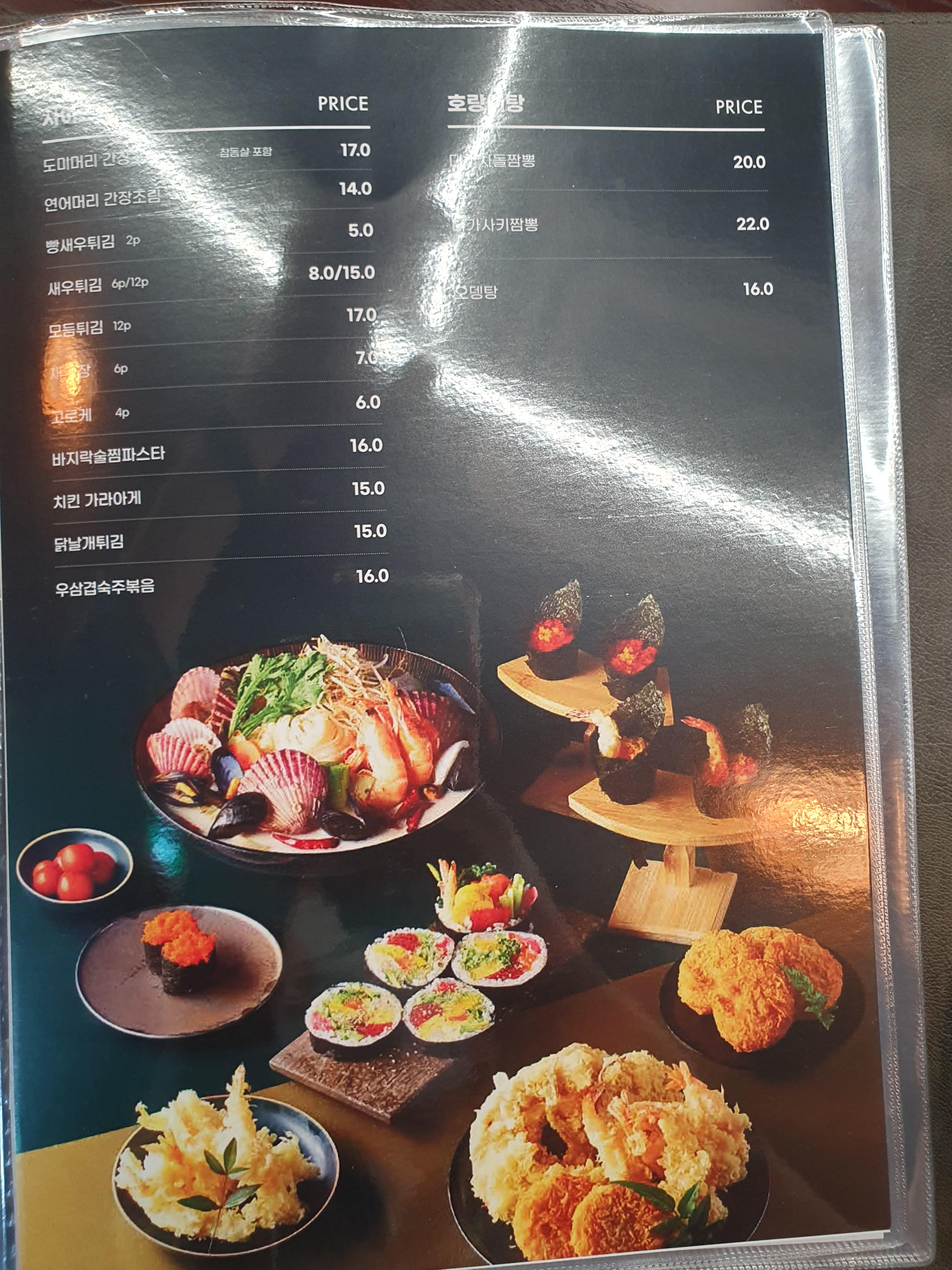 호랑이초밥의 메뉴판인데요.