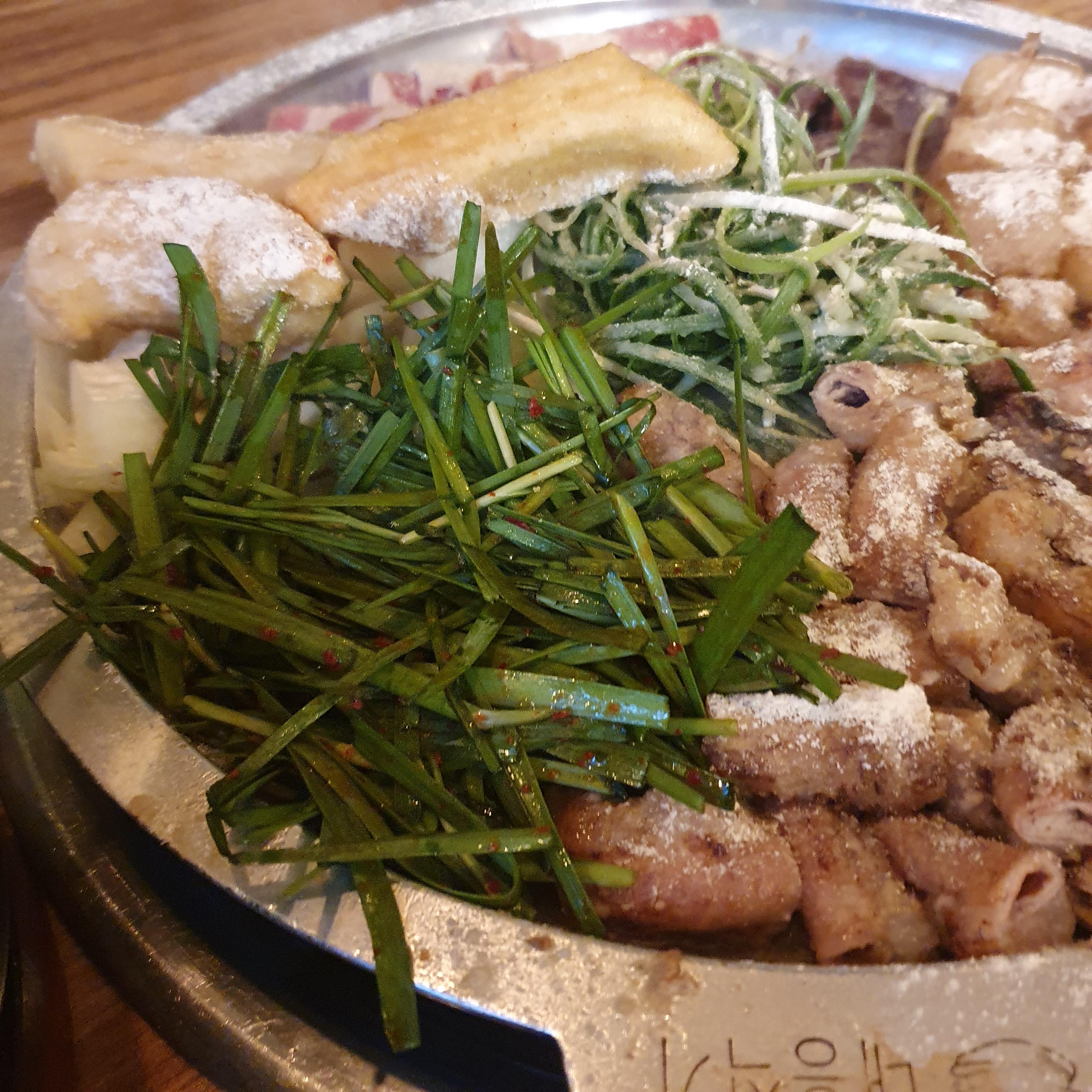 곱창 기름에 부추가 구워지면 너무나 맛있네요.
