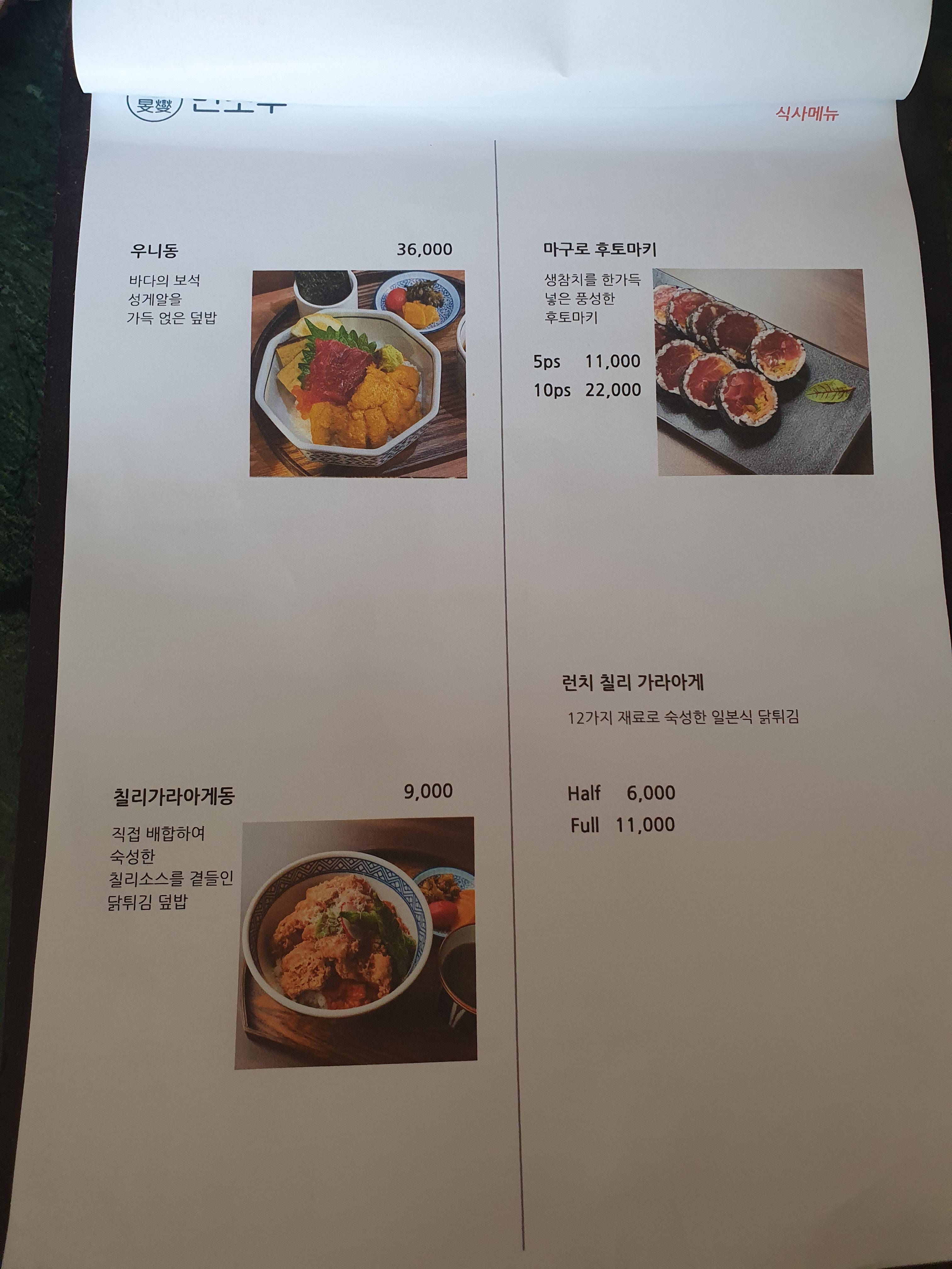 카이센동이 하두 유명하고 메인메뉴이다보니 조금 소외받는 메뉴이지 않을까 싶습니다.