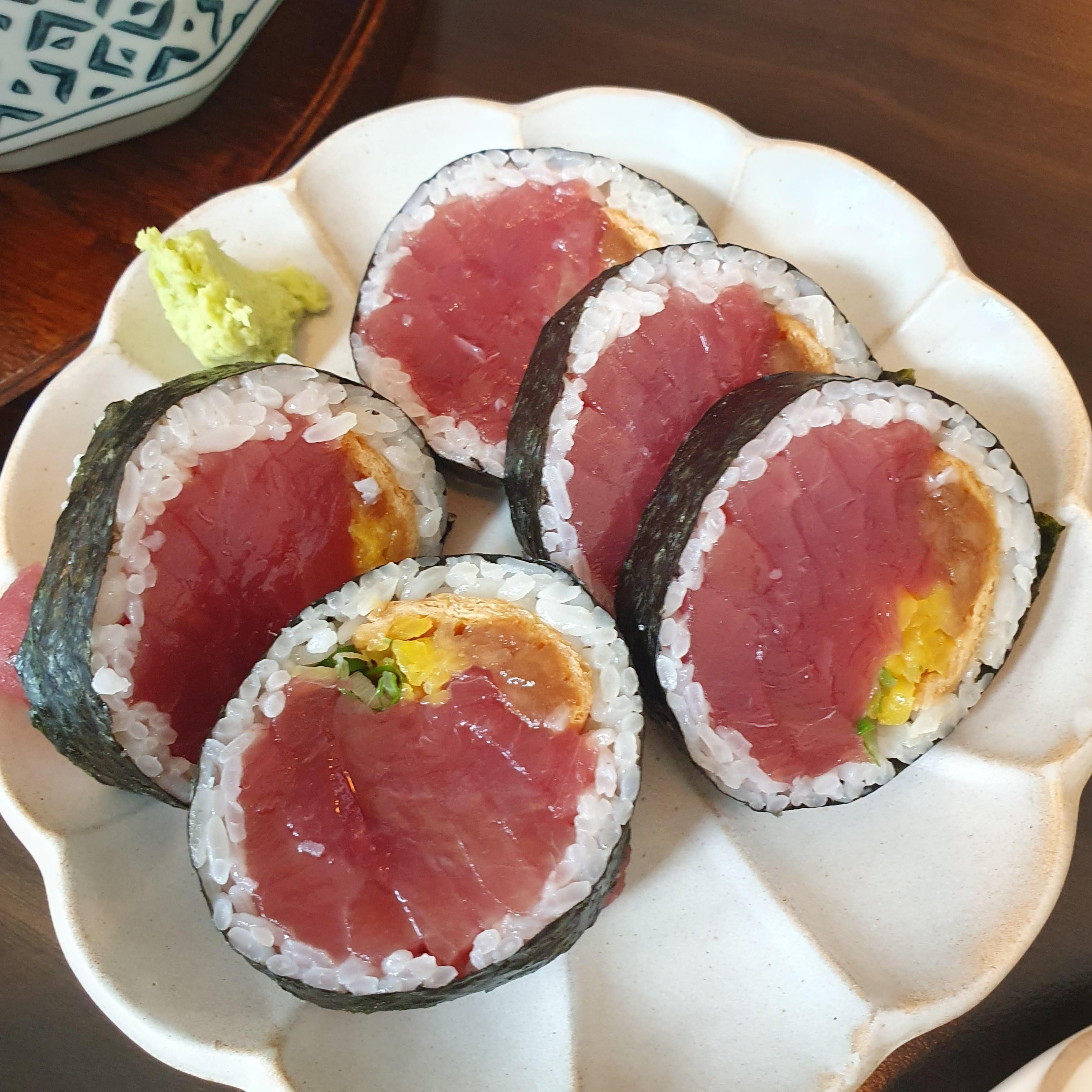 요번에는 사이드 메뉴로 마구로 후토마키도 하나 주문하였습니다 5ps짜리로 주문하였는데요.