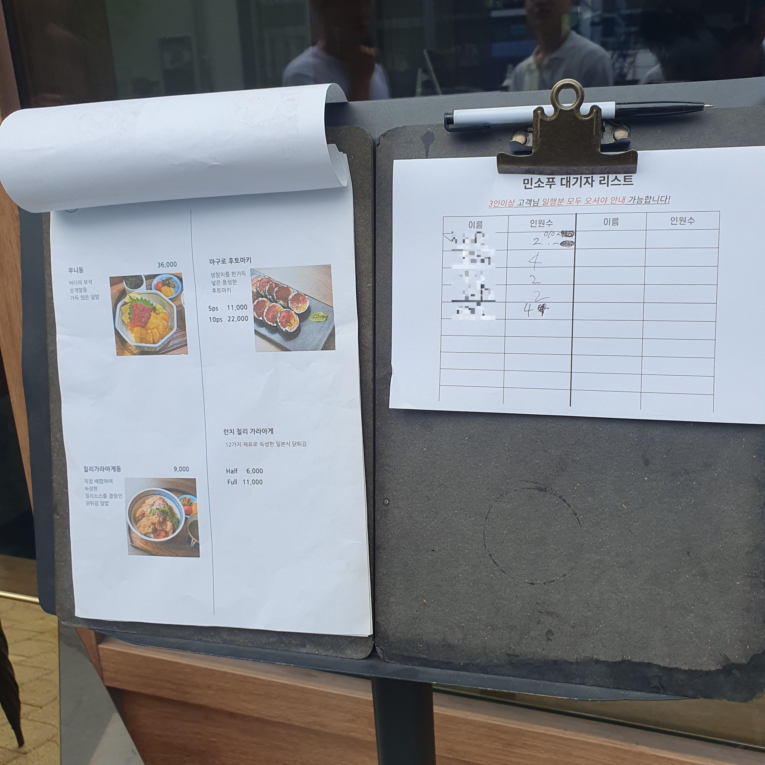 앞에는 웨이팅 순서를 적는 종이가 하나놓여있습니다.