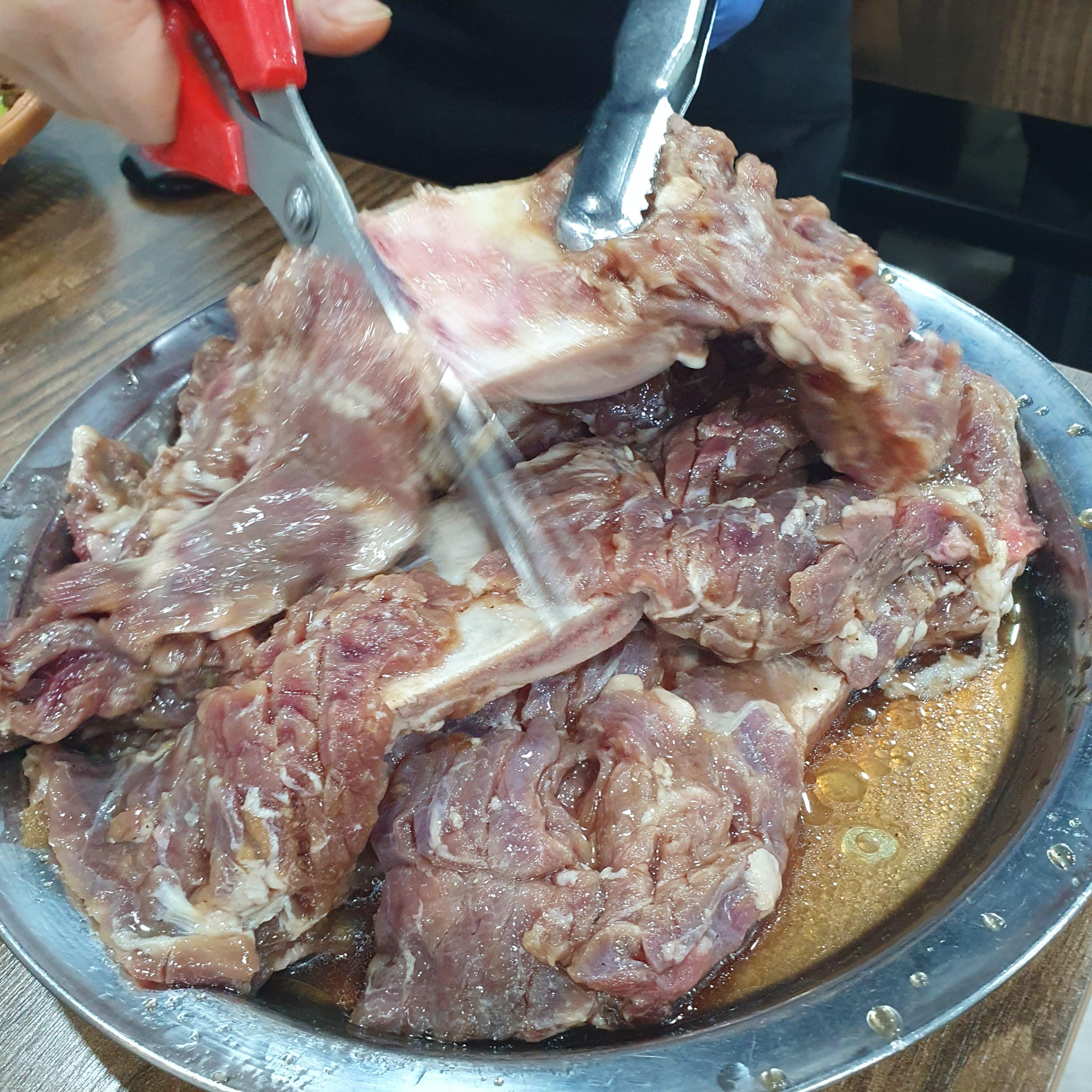 이렇게 갈비가 나오고 바로 보는 앞에서 갈비대에서 잘라주십니다.