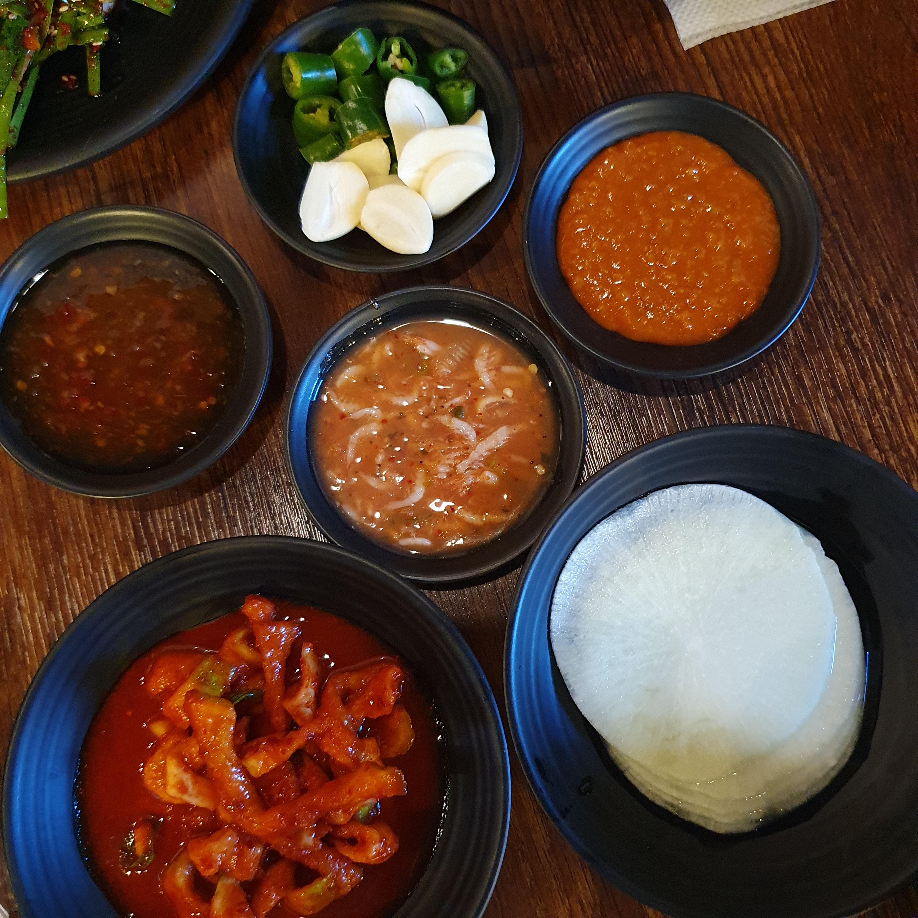 양념과 기본 반찬들이 나옵니다.