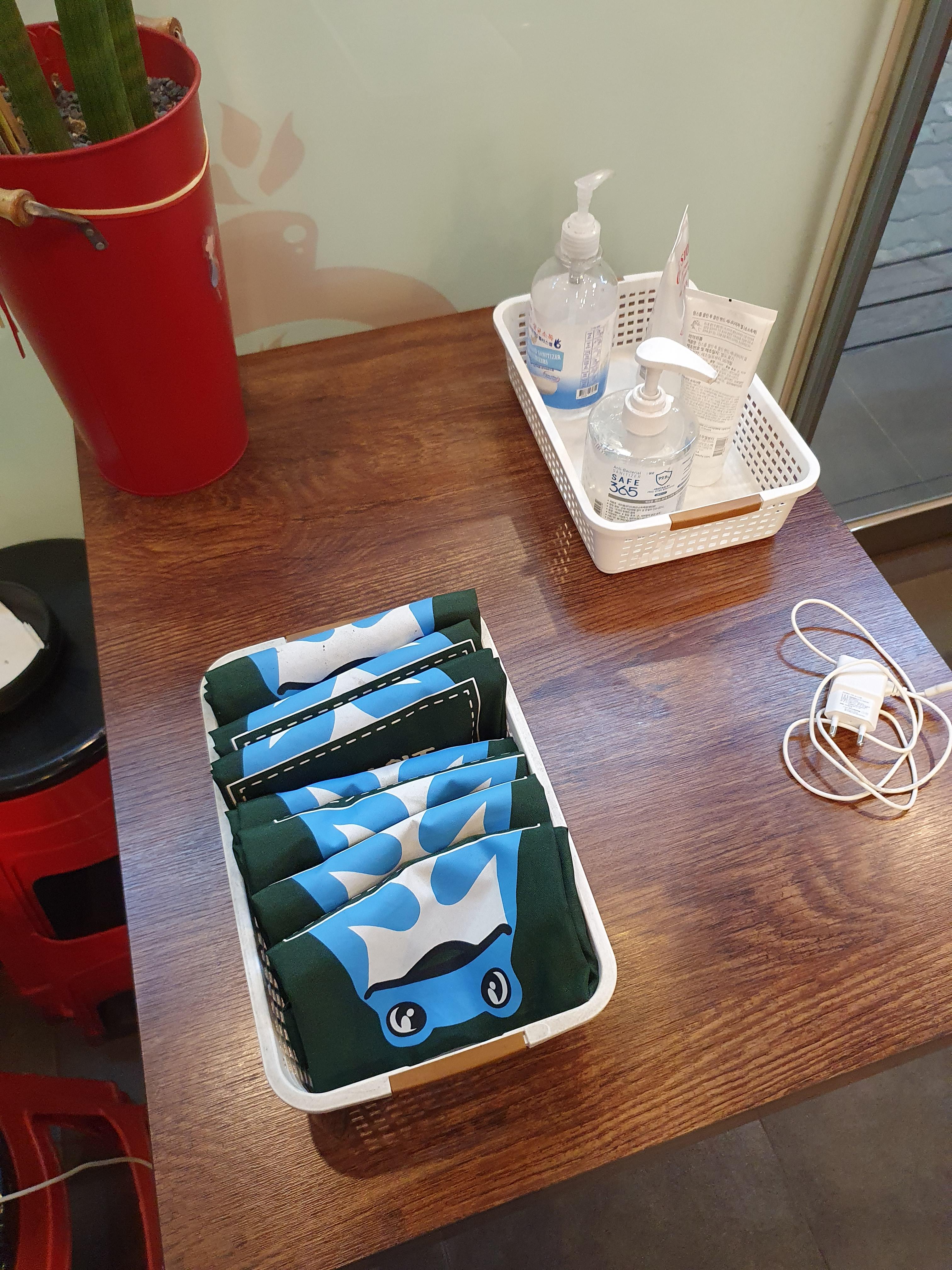 매장 입구 쪽 테이블에 이렇게 앞치마가 준비되어있습니다.