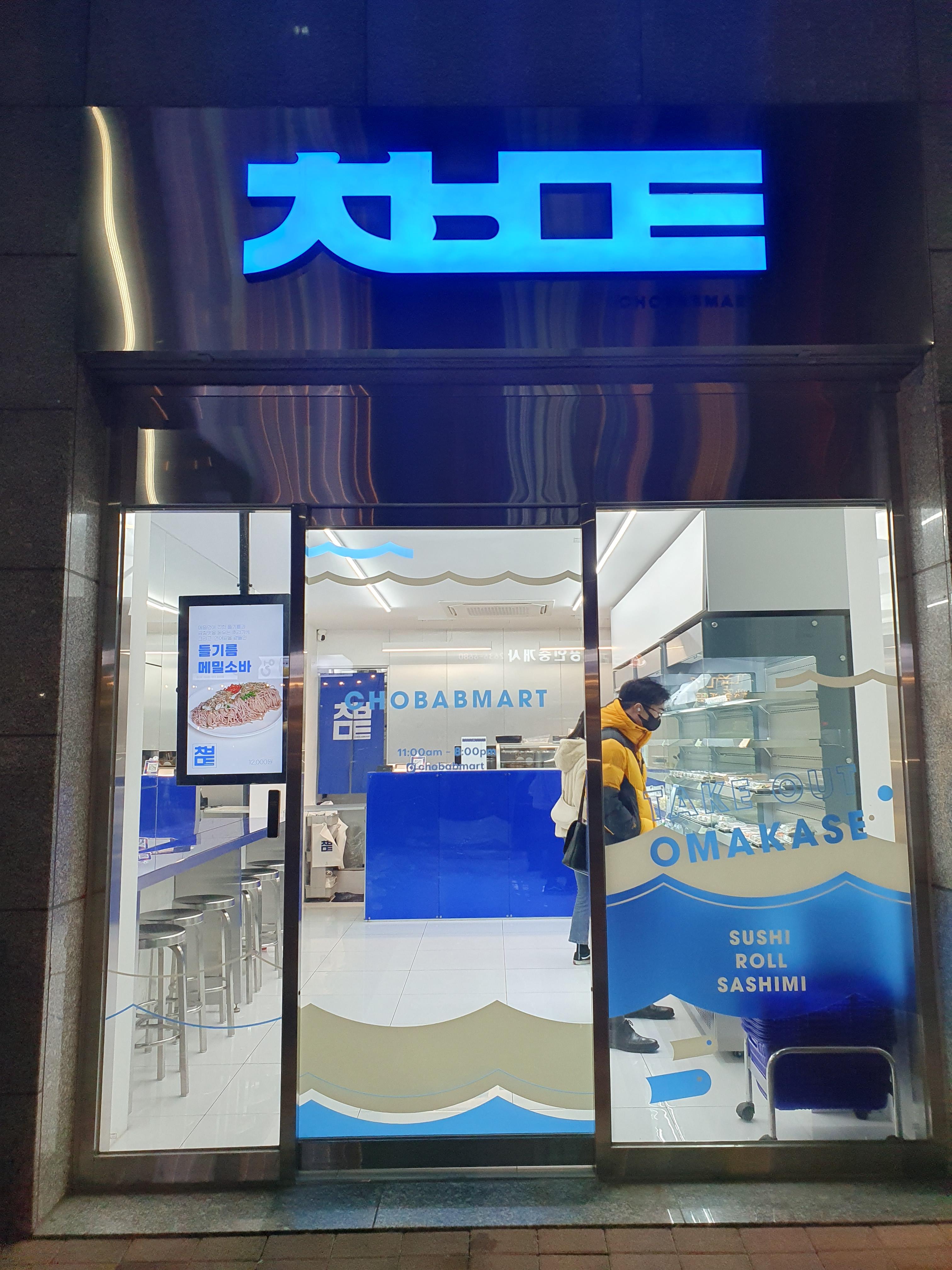 누가봐도 초밥마트라고 읽을 수 있을것 같은 ㅊㅂㅁㅌ 라는 초성만 사용한 깔끔한 간판입니다.