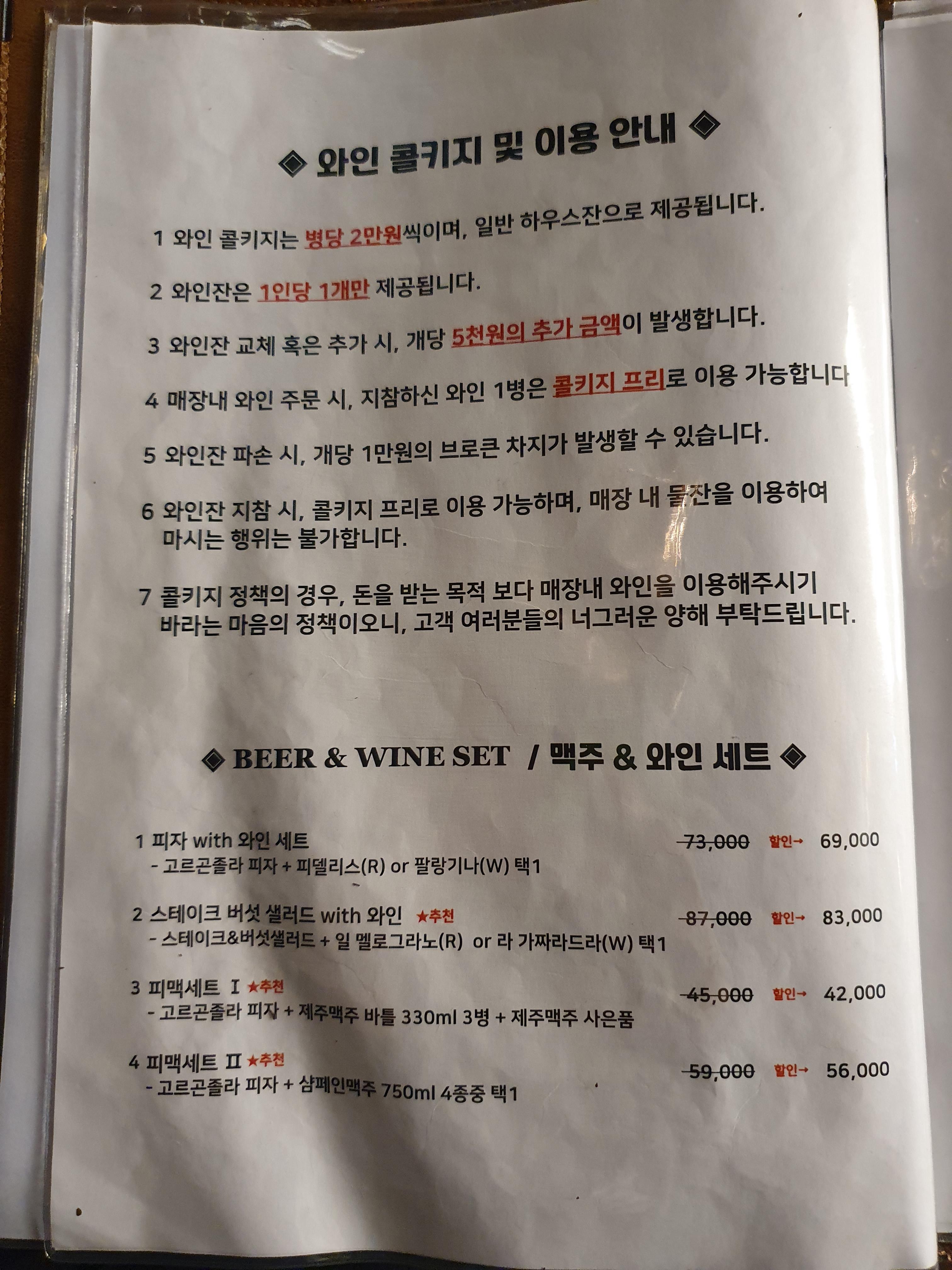 콜키지도 병당 2만원에 가능하다고 나와있네요.