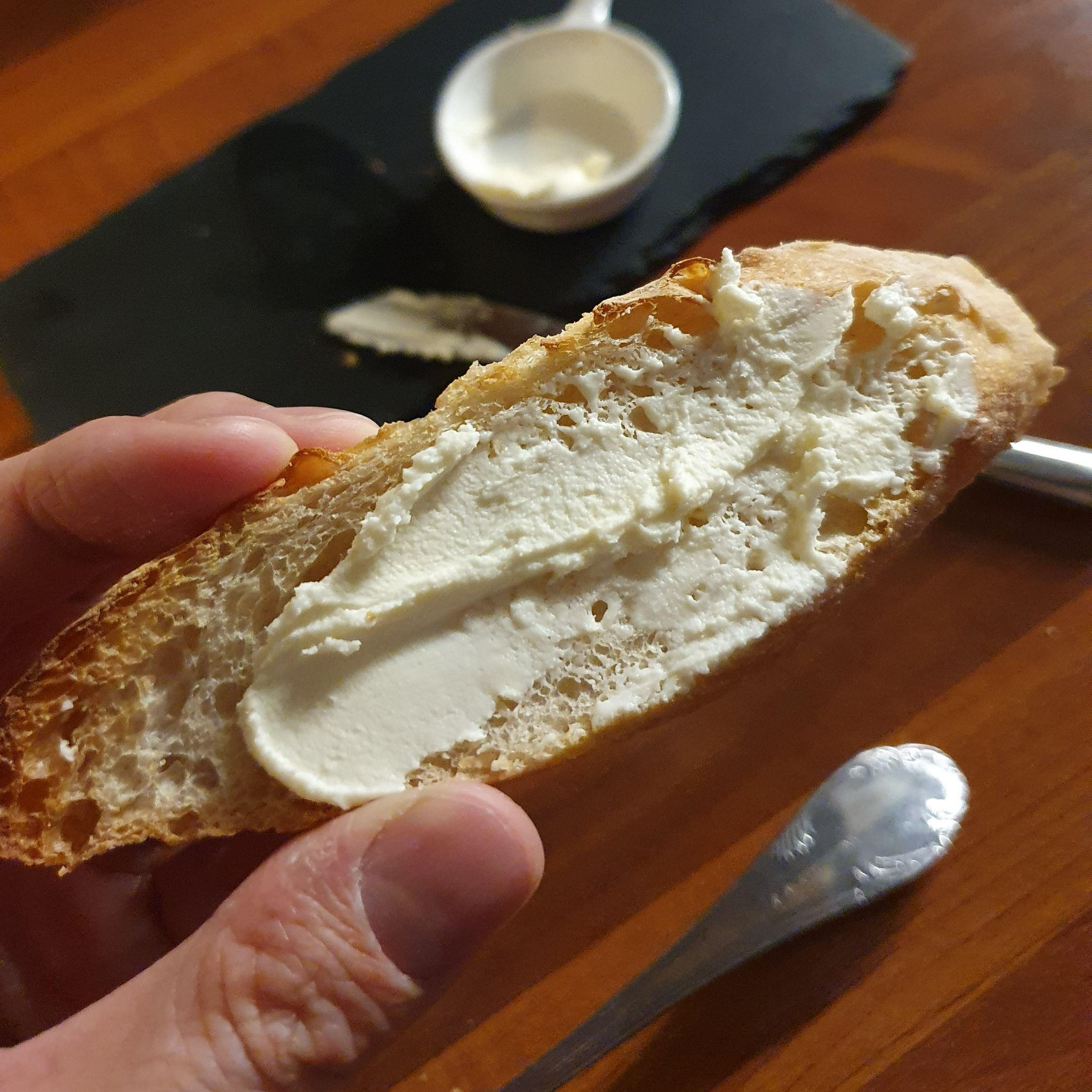 식전 빵 2조각이 크림치즈와 함께 나오는데,