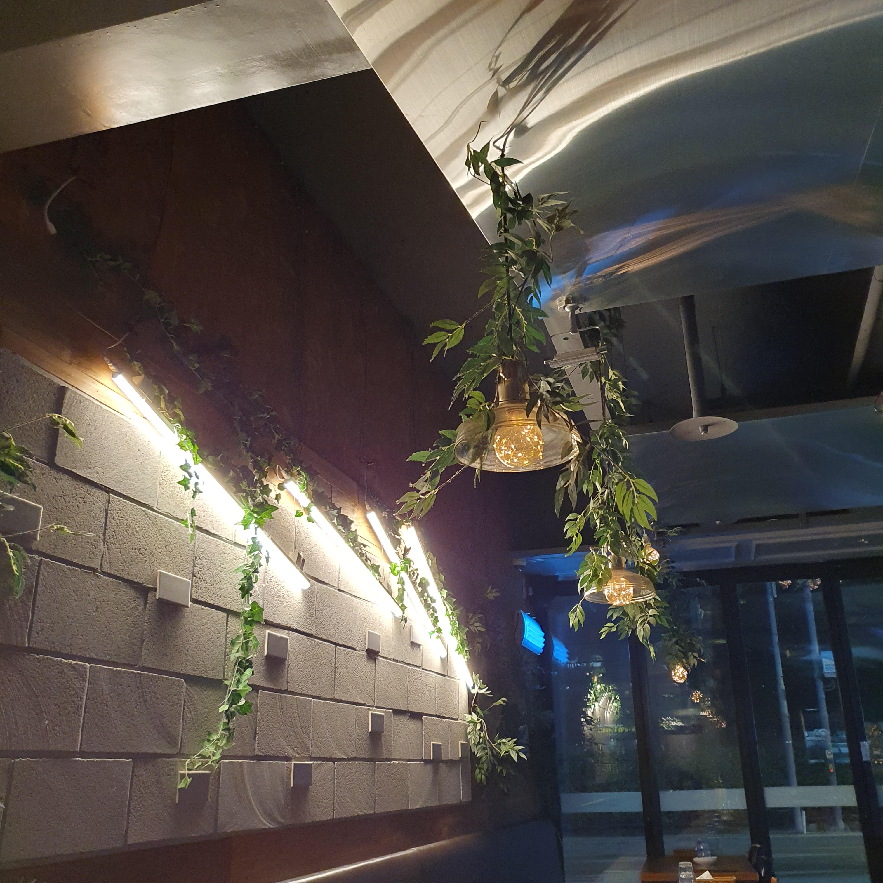 벽면 조명이나 위에 등 조명에 풀과 함께 인테리어 되어있는 모습이 뭔가 잘 어울린다는 생각이 들었습니다.