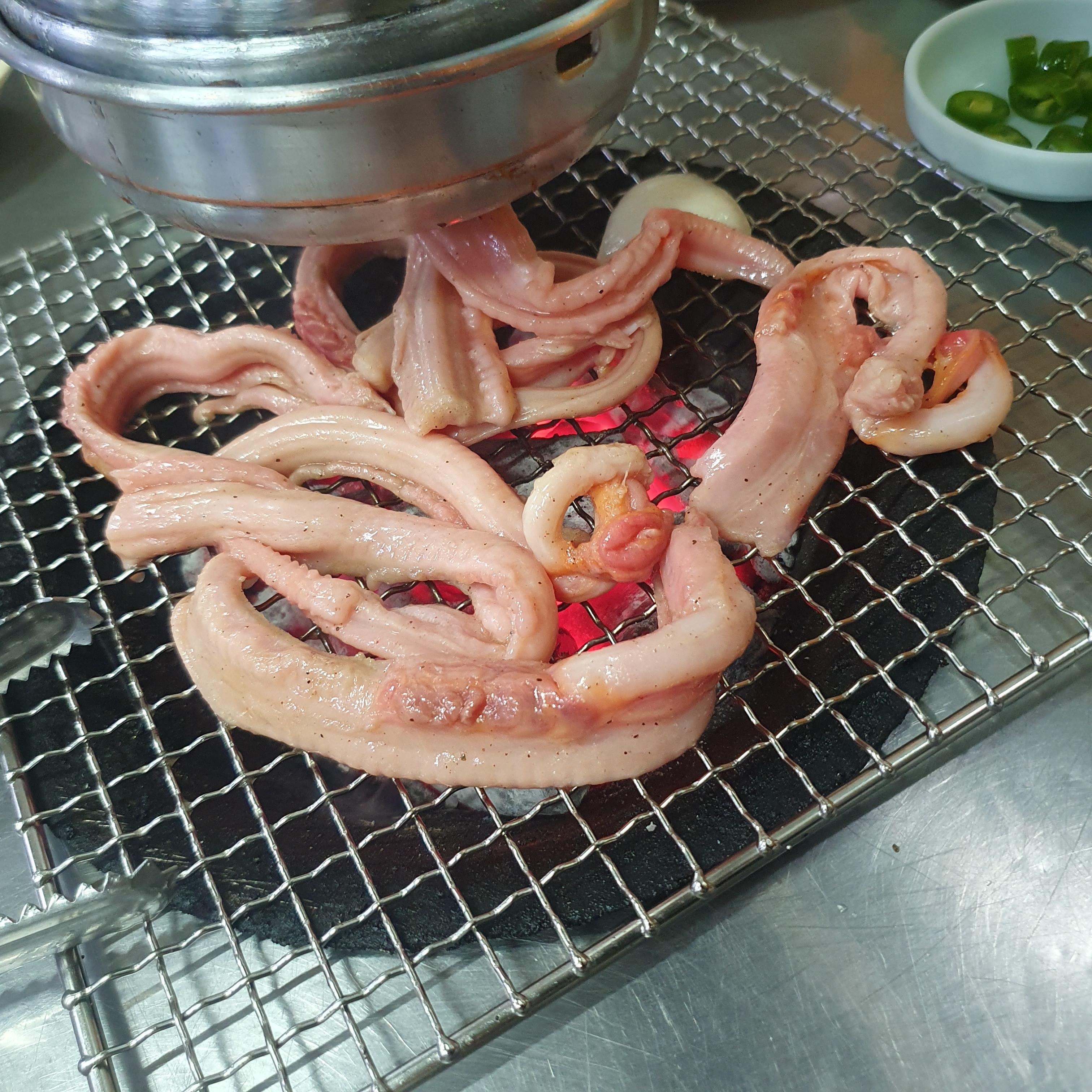 꼼장어 소금은 아주머니께서 저희 테이블에서 구워주십니다.