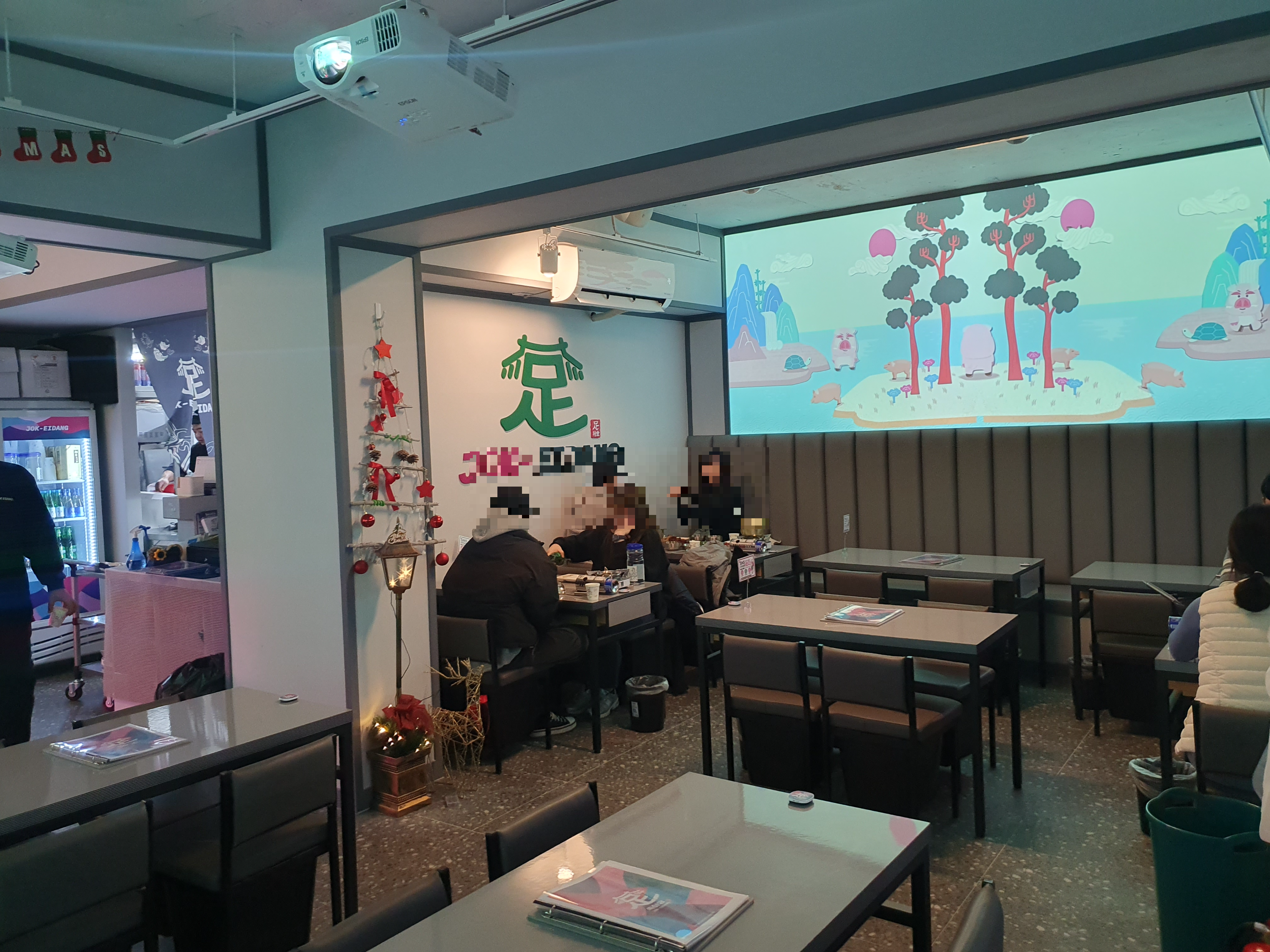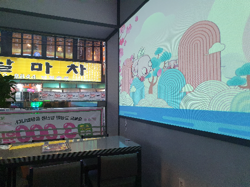 무엇보다 양옆에 스크린에서 족이당의 캐릭터가 나오는 애니메이션?이 틀어져있는데요.